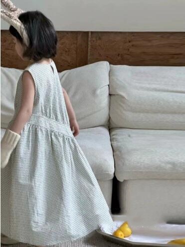 上品なチェック柄が可愛いキッズ用ロングワンピースです。