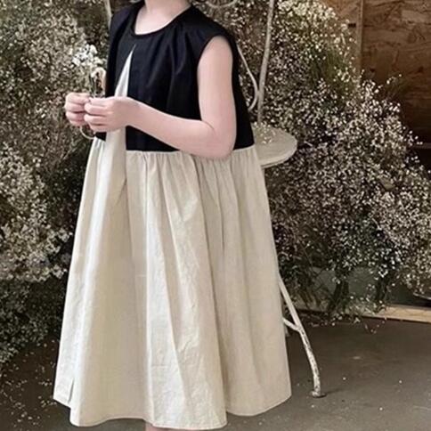 上品な配色が魅力的なキッズ用ロングワンピースです。
