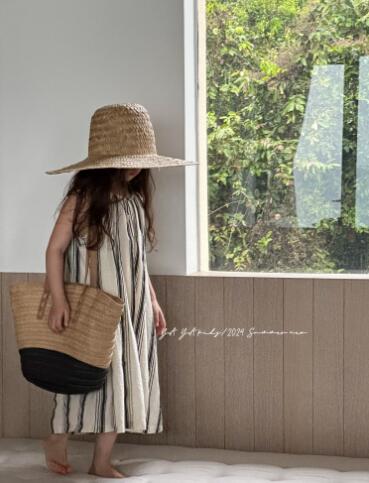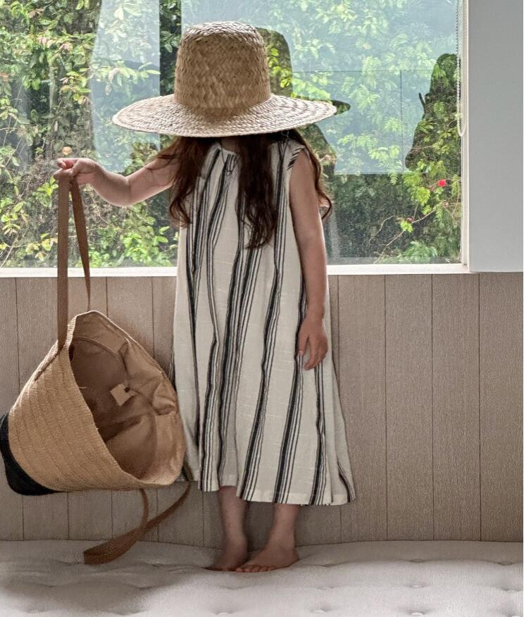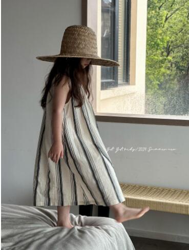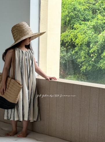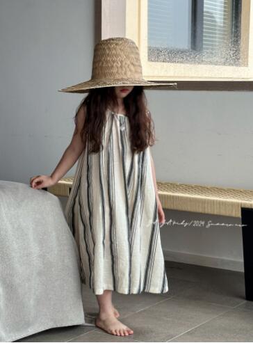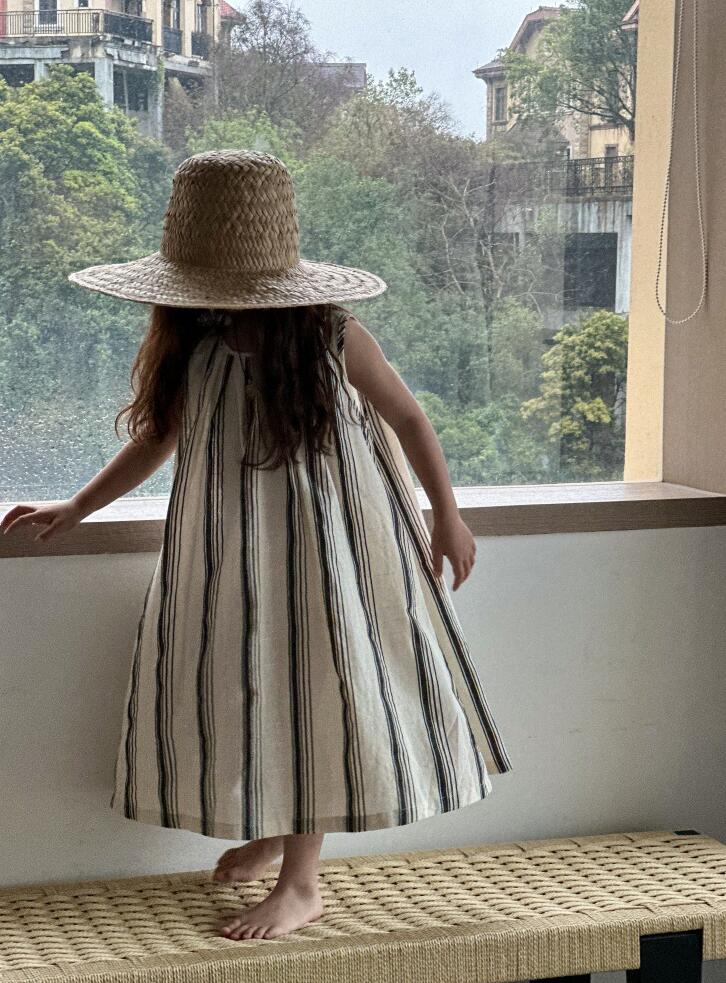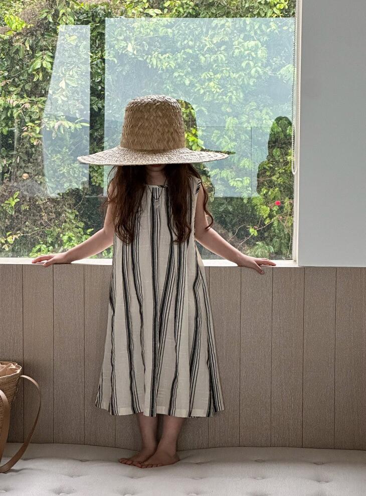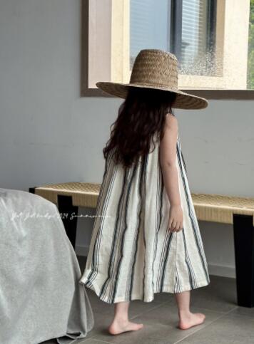 上品なストライプ柄が魅力的なキッズ用ロングワンピースです。