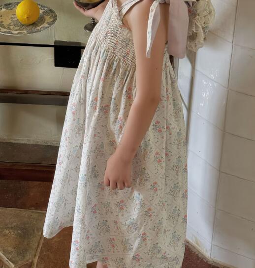 可愛らしい小花柄が魅力的なキッズ向けロングワンピースです。
