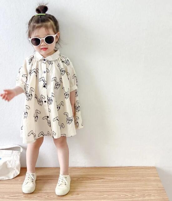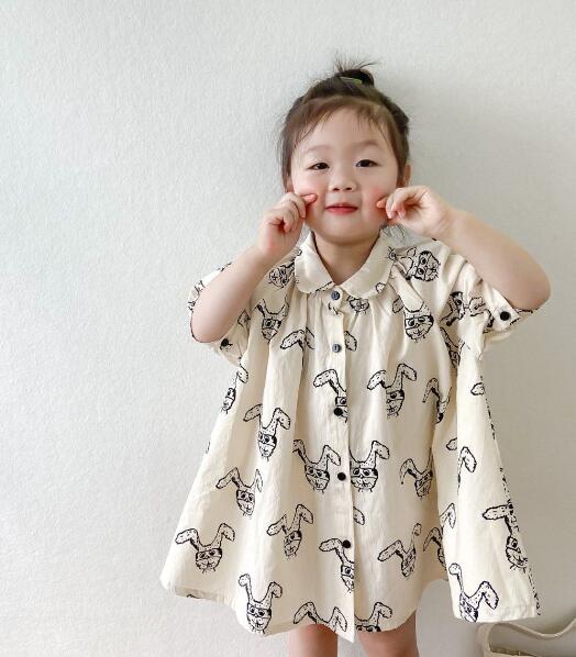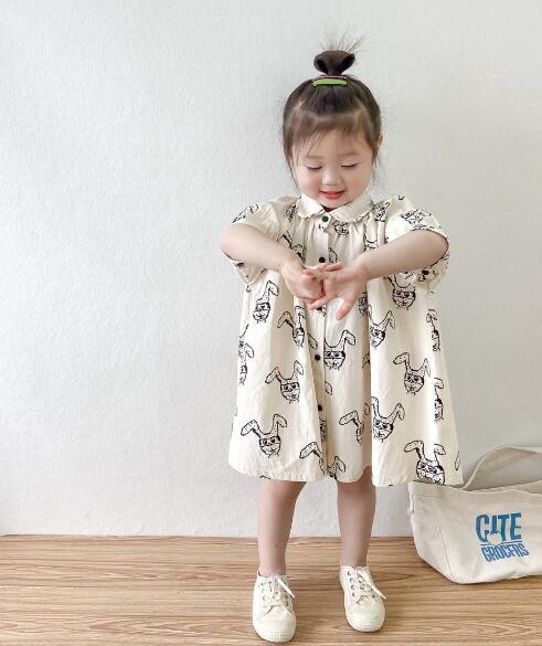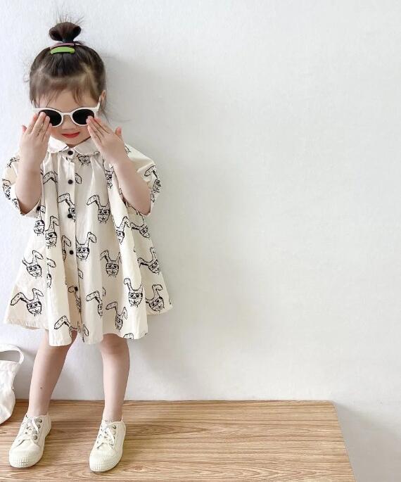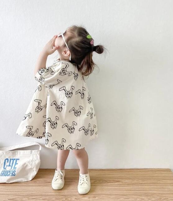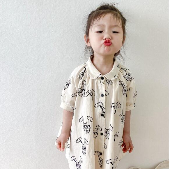 可愛いうさぎ柄が全面にプリントされたキッズ用ロングワンピースです。