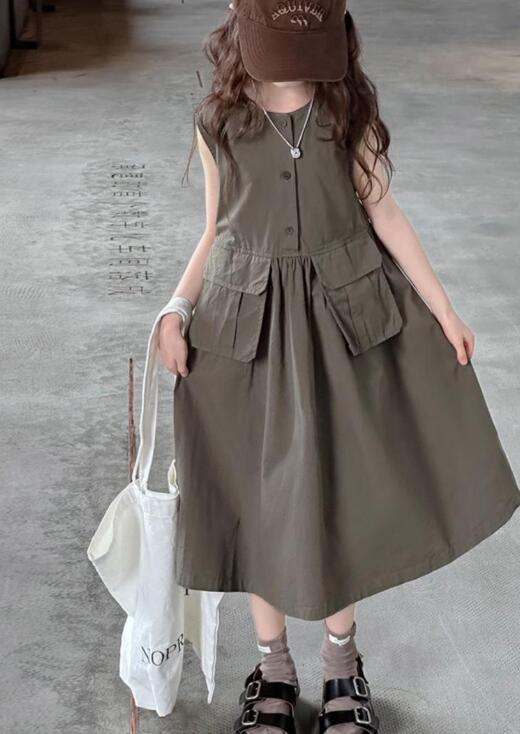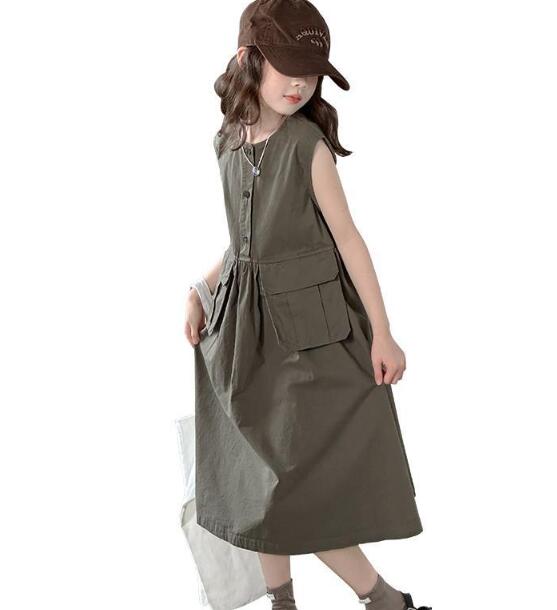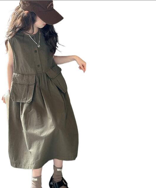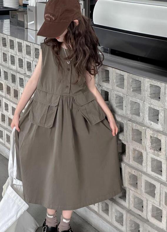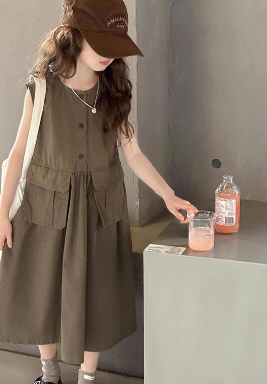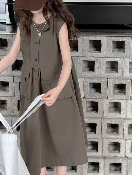 ノースリーブで涼しく、前ボタンとポケット付きで実用性も抜群。