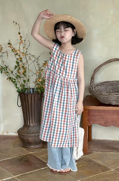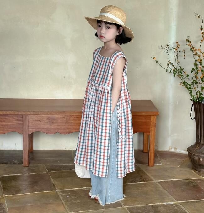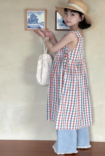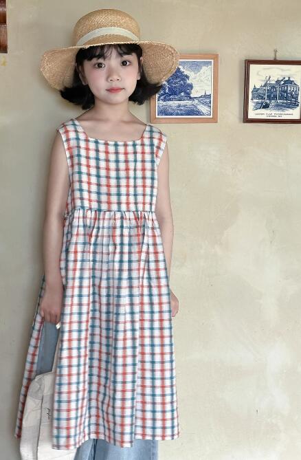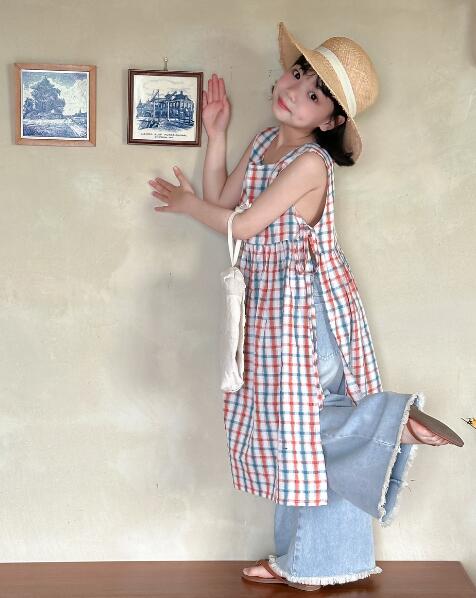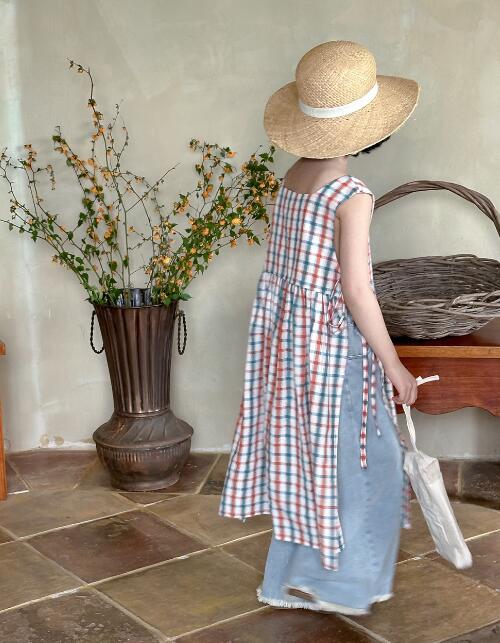 可愛いチェック柄が印象的なキッズ用ロングワンピースです。