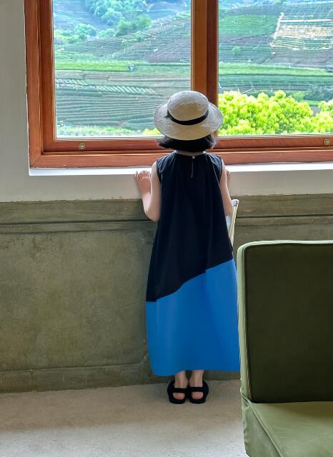 黒と青の美しい配色デザインで、袖なしタイプなので夏にぴったり。