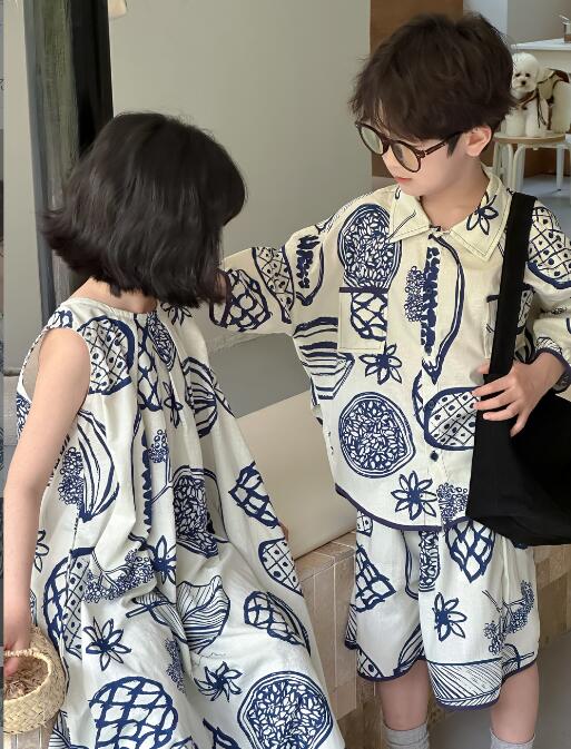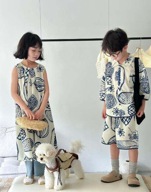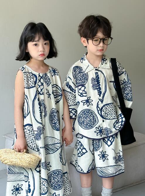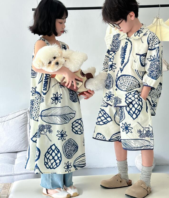 姉妹兄弟でお揃いコーデが楽しめるキッズ向け和風柄ロングワンピースです。