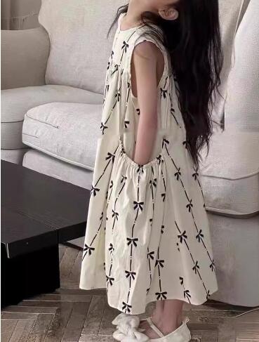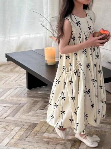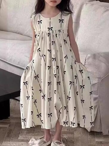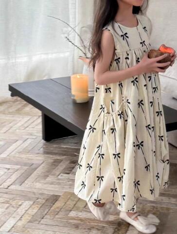 可愛いリボン柄がプリントされたキッズ用ロングワンピースです。