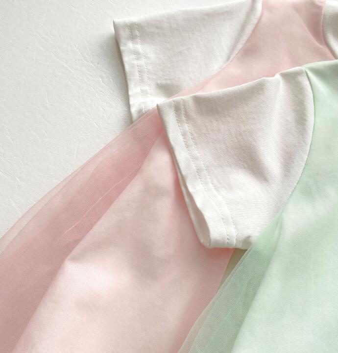 柔らかなチュール素材を重ねた上品なデザインで、普段着からお出かけまで幅広く活躍します。