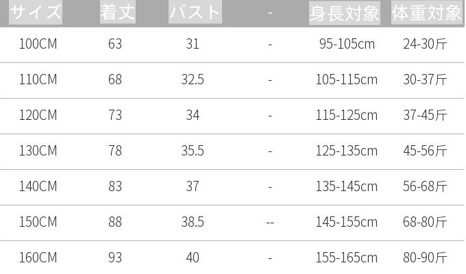 サイズは100センチから160センチまで対応しています。