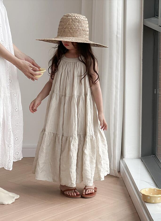 ふんわりとした生地感が魅力的なキッズ用ロングワンピースです。