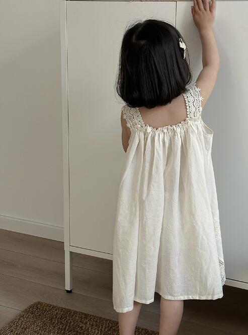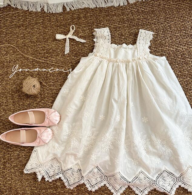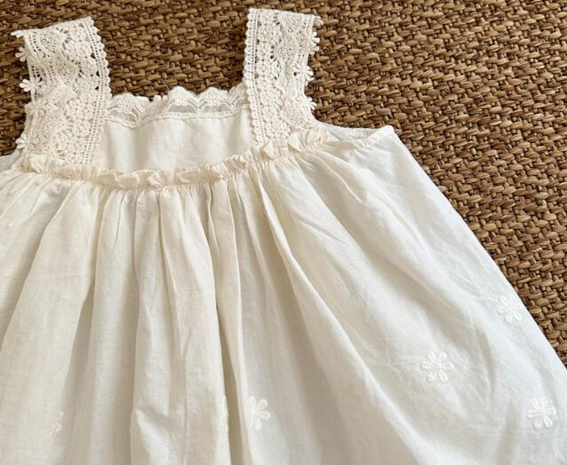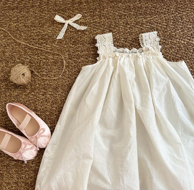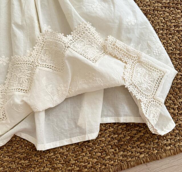 柔らかな白色生地に繊細な刺繍を施し、裾のレースが優雅な印象を演出します。