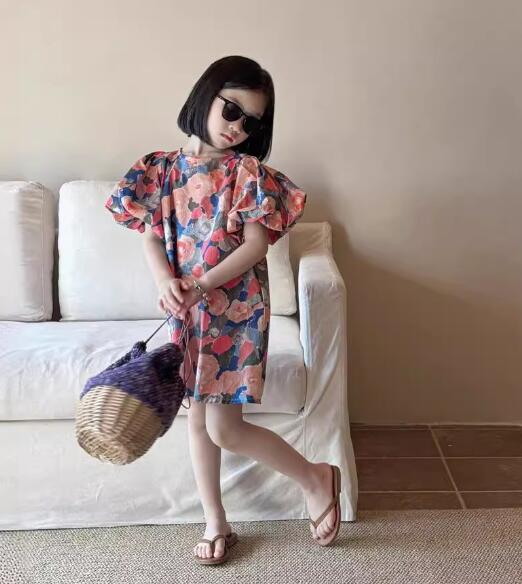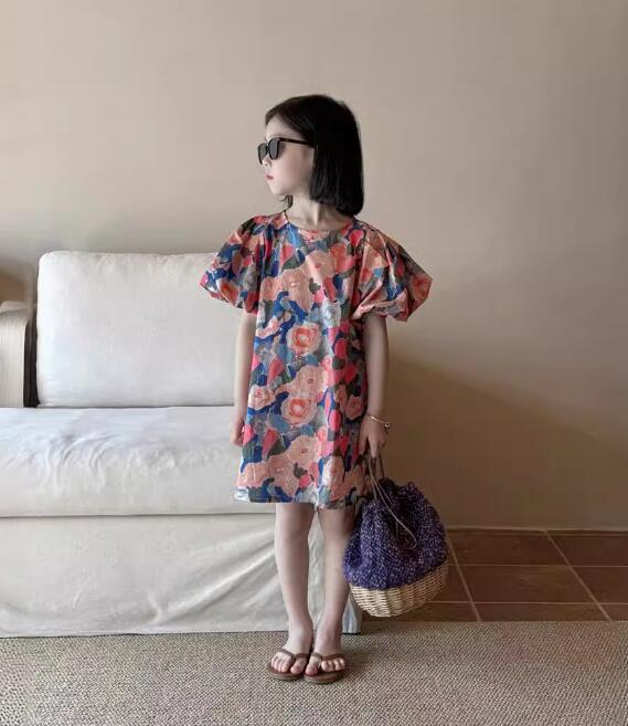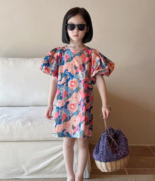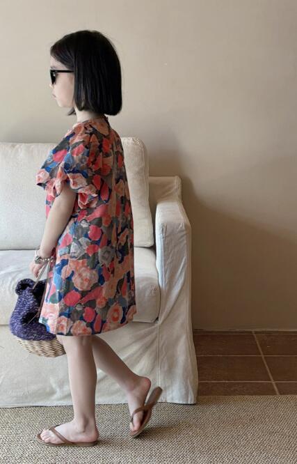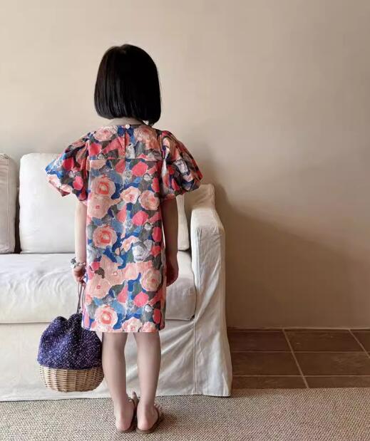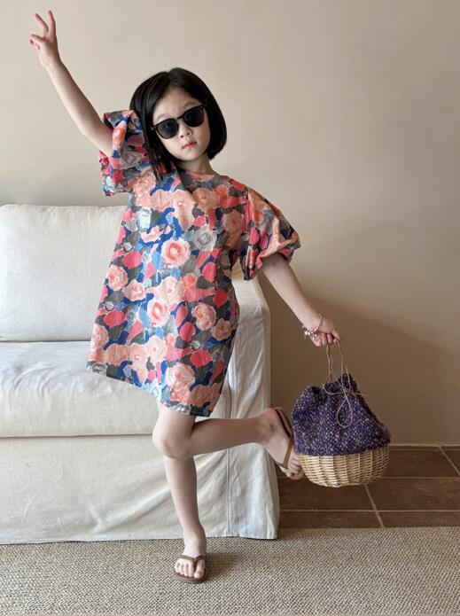 可愛い花柄プリントが印象的なキッズ用ロングワンピースです。