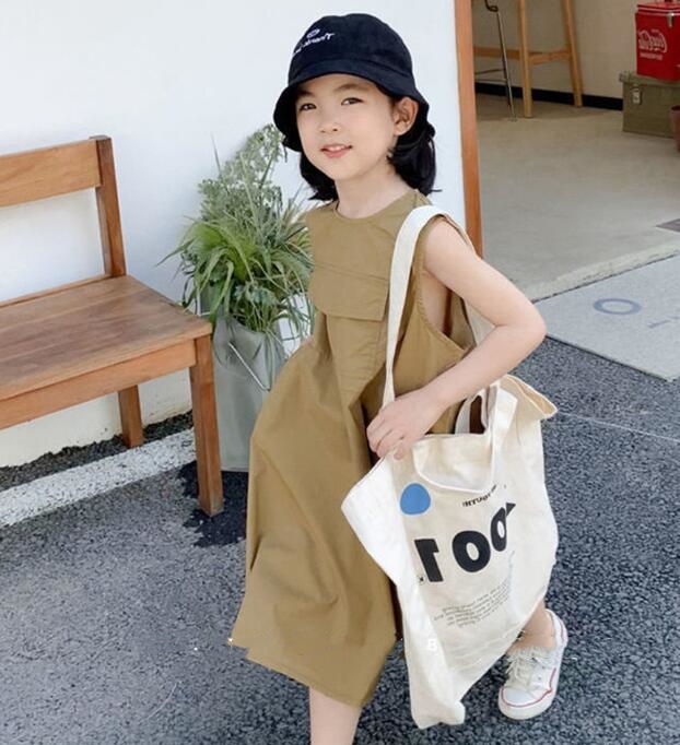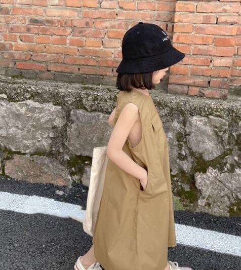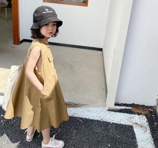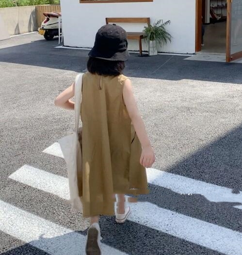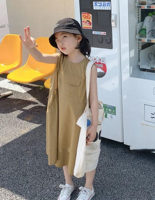 夏にぴったりなキッズ向けの無袖ロングワンピースです。 ゆったりとしたシルエットで動きやすく、お出かけにも普段着にも最適。 胸元のポケットがアクセントになった可愛いデザインで、 九十センチから百四十センチまでサイズ展開豊富です。