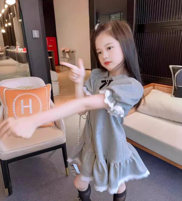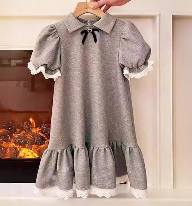 上品な襟付きデザインが魅力的なキッズ用ロングワンピース。