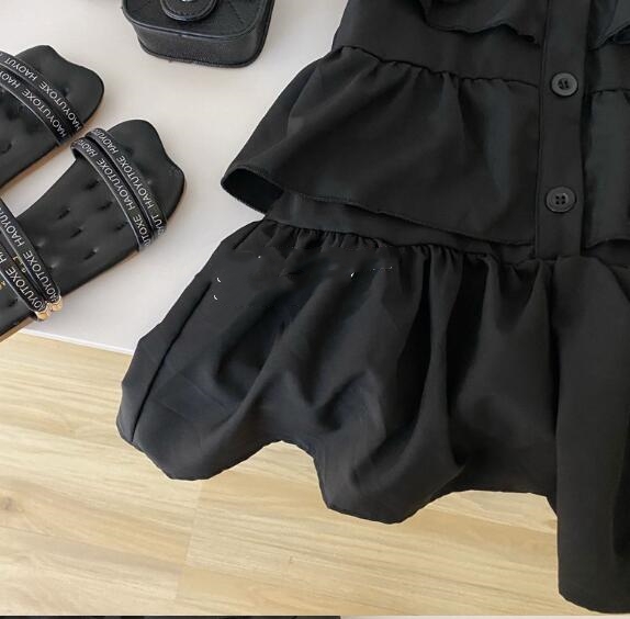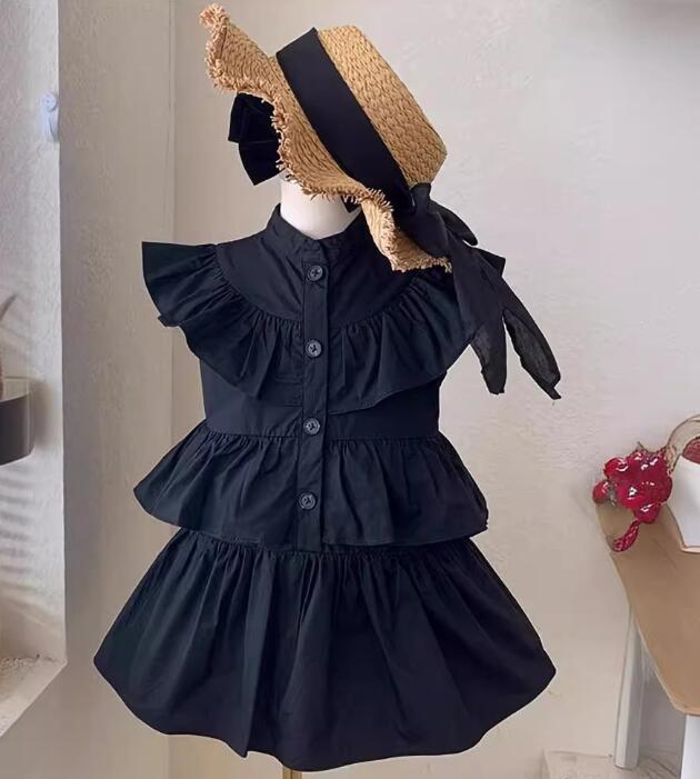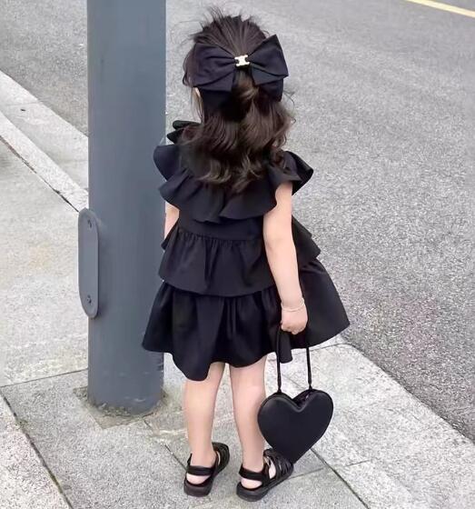 上品な黒色のキッズ用ロングワンピースが登場しました。