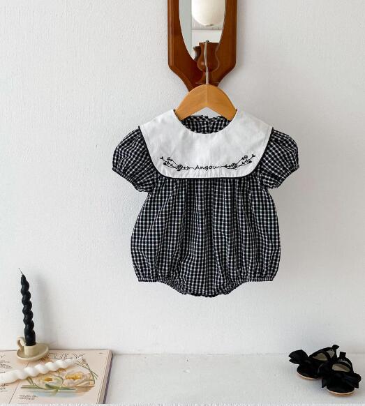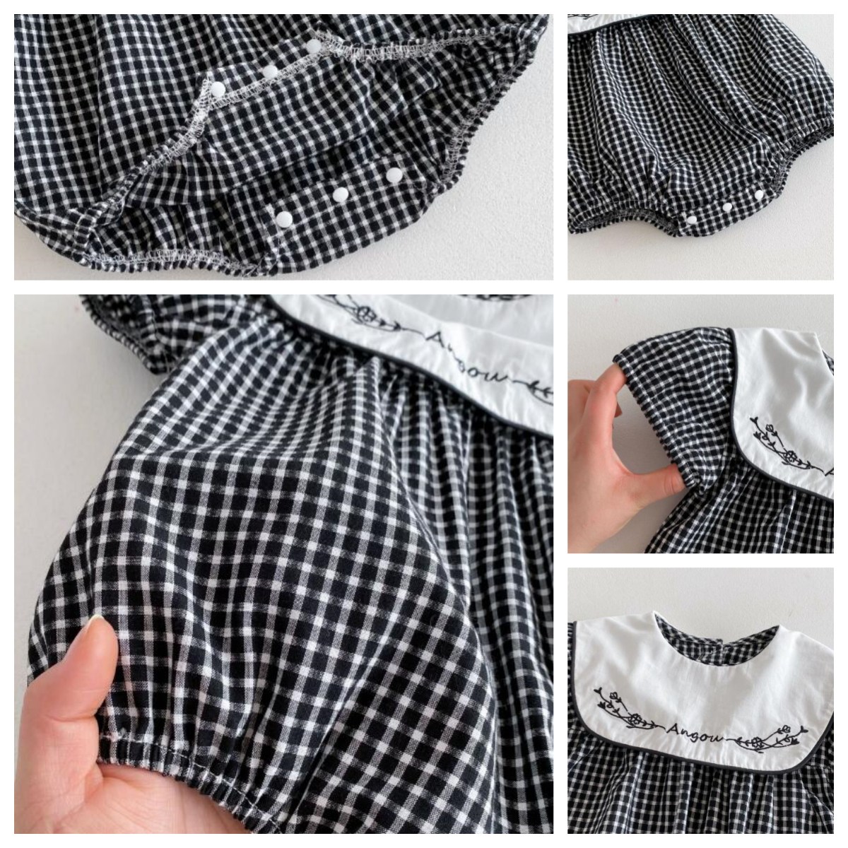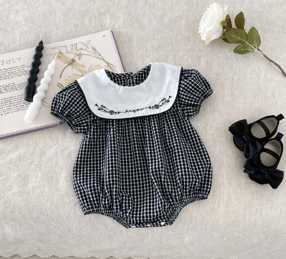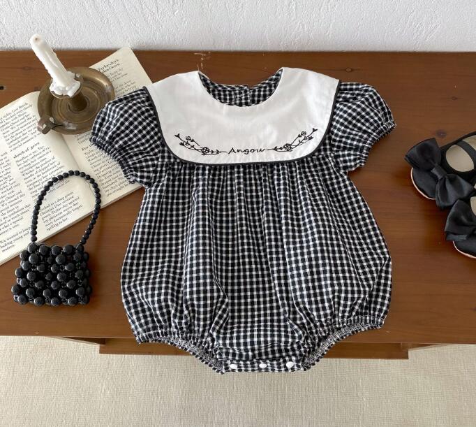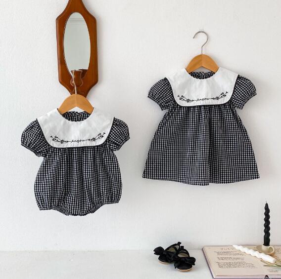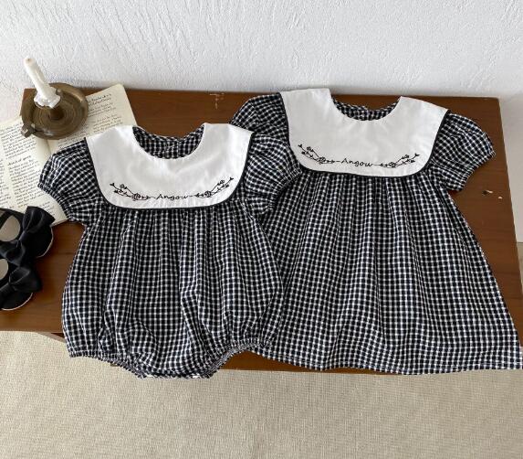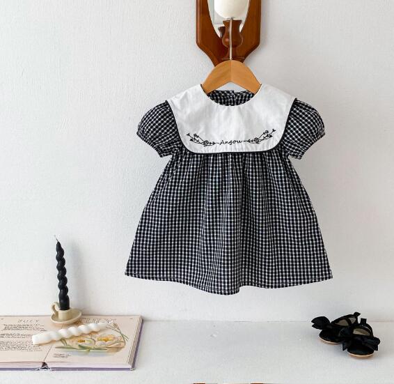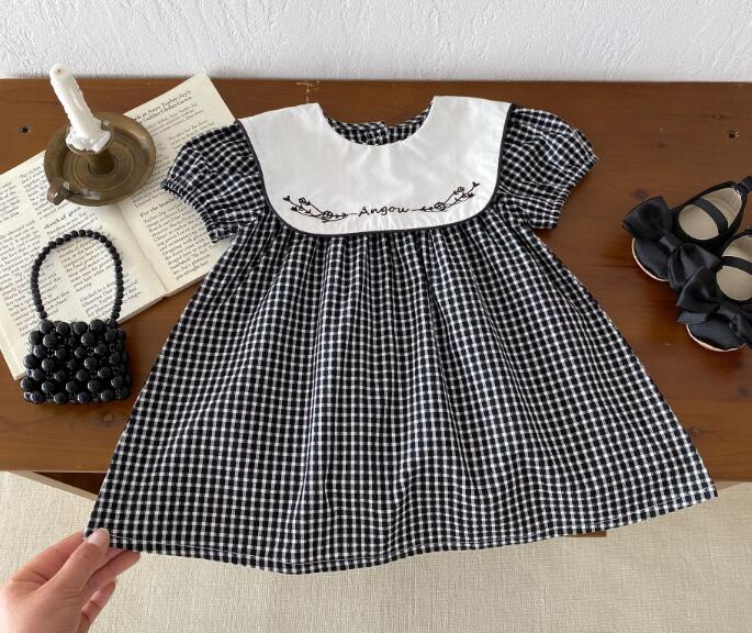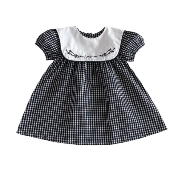 可愛らしいギンガムチェック柄と白い襟の刺繍がおしゃれなキッズ向けワンピースです。