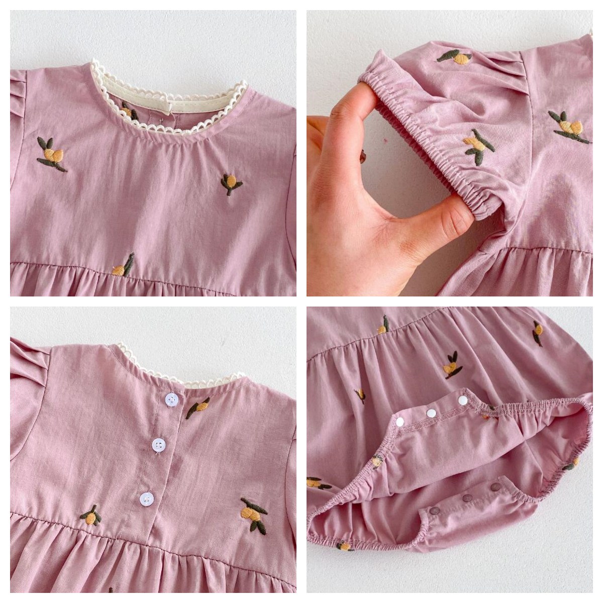 可愛らしい刺繍柄が魅力的なキッズ用ワンピースとロンパースのセットです。 優しいピンク色で上品な仕上がりになっており、ロングワンピースタイプで動きやすさも抜群。 普段着からお出かけまで幅広くご利用いただけます。