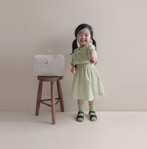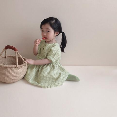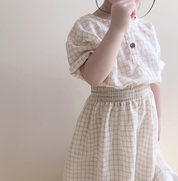 可愛らしいギンガムチェック柄が魅力的なキッズ用ロングワンピースです。