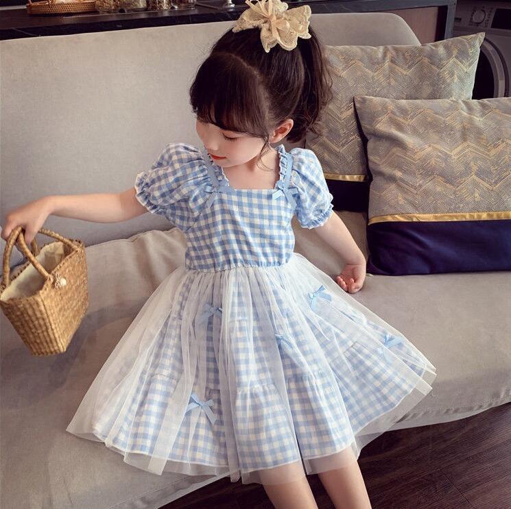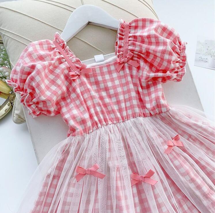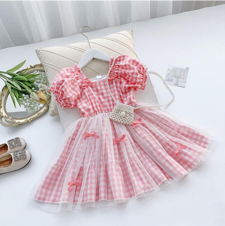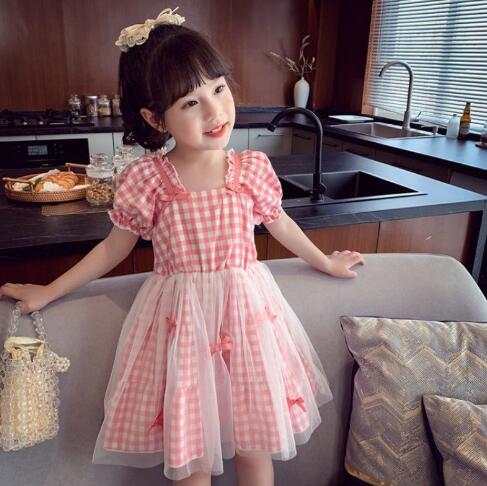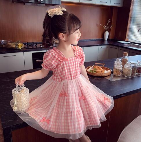 可愛らしいピンクのギンガムチェック柄が魅力的なキッズ用ロングワンピースです。