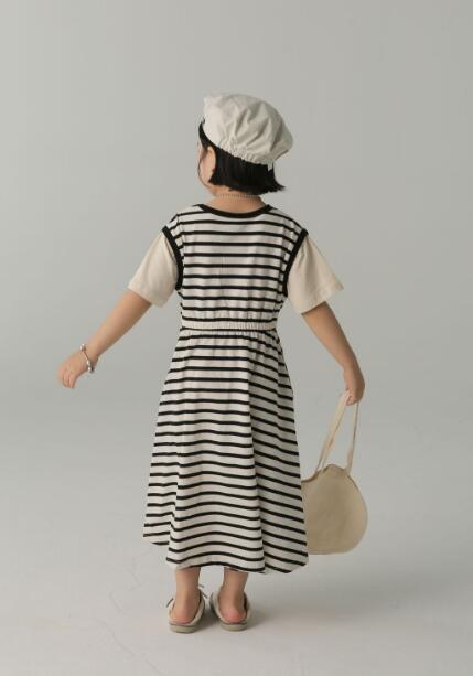 人気のボーダー柄がおしゃれなキッズ用ロングワンピースです。 半袖デザインで夏にぴったり、ウエストゴムで着心地も抜群。 カジュアルからお出かけまで幅広く活躍する女の子の定番アイテムです。