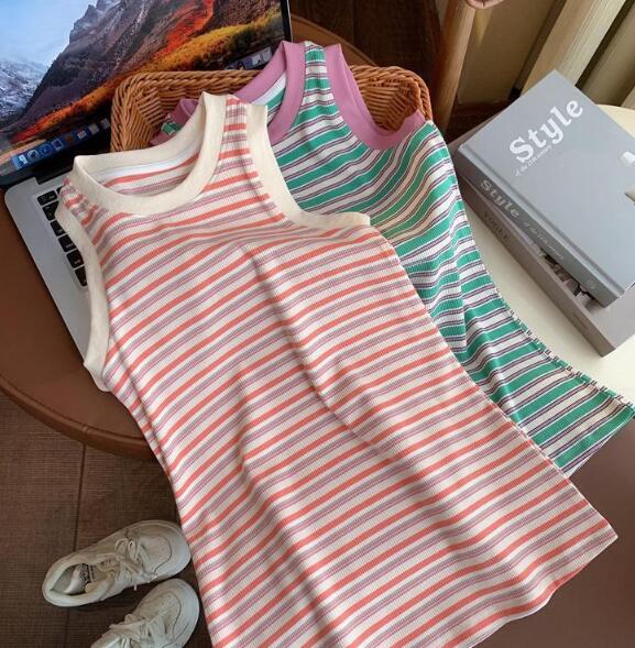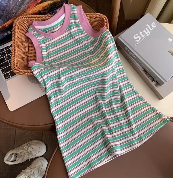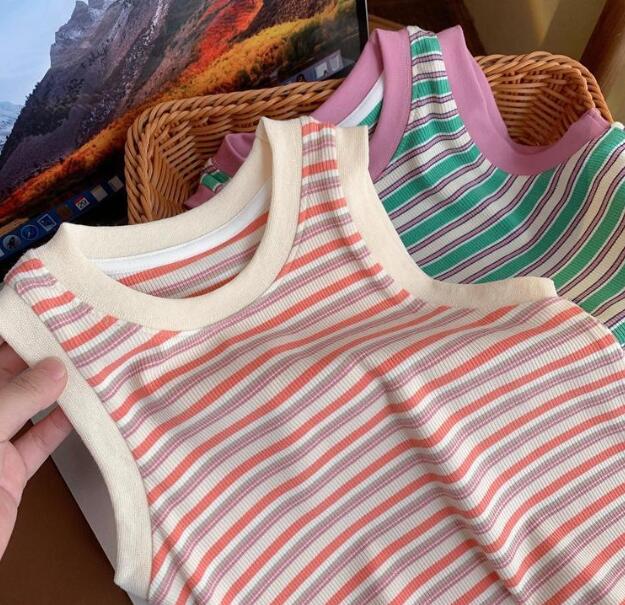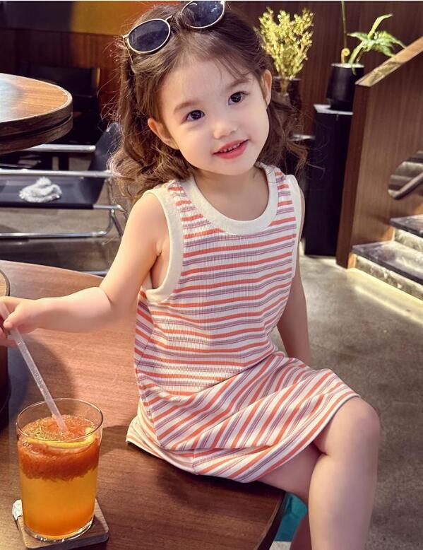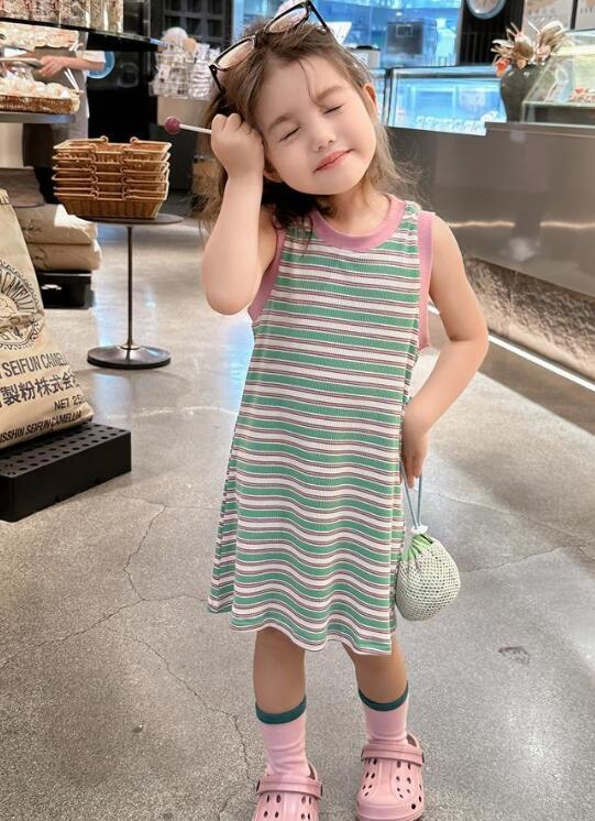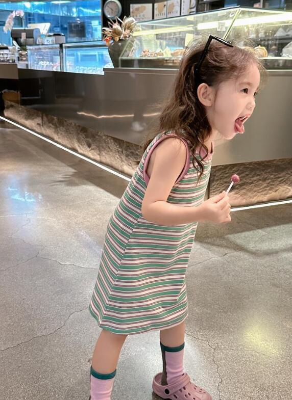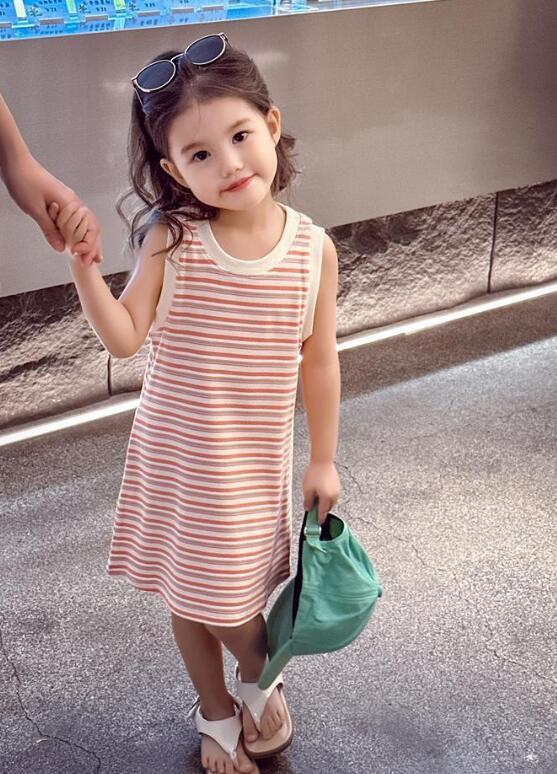 可愛いボーダー柄のキッズ用ノースリーブワンピースです。