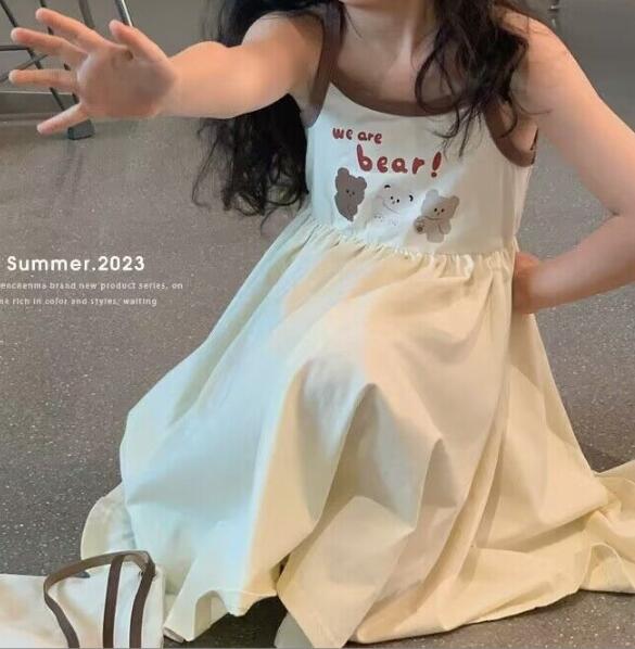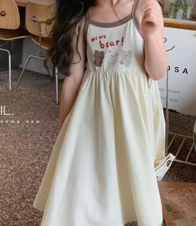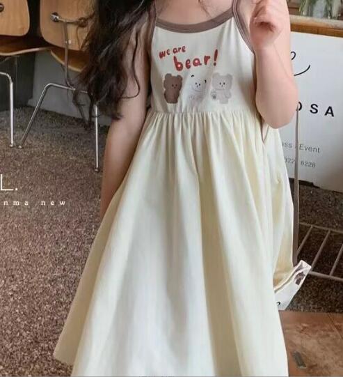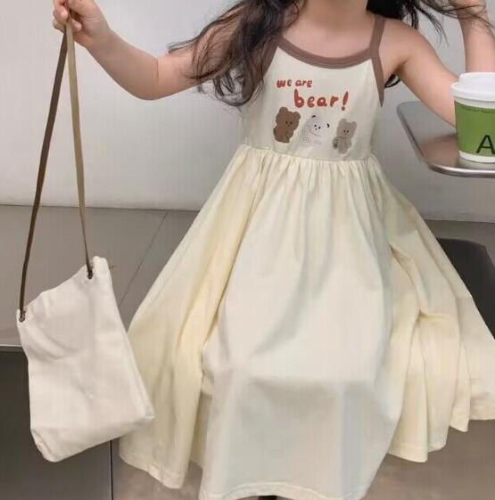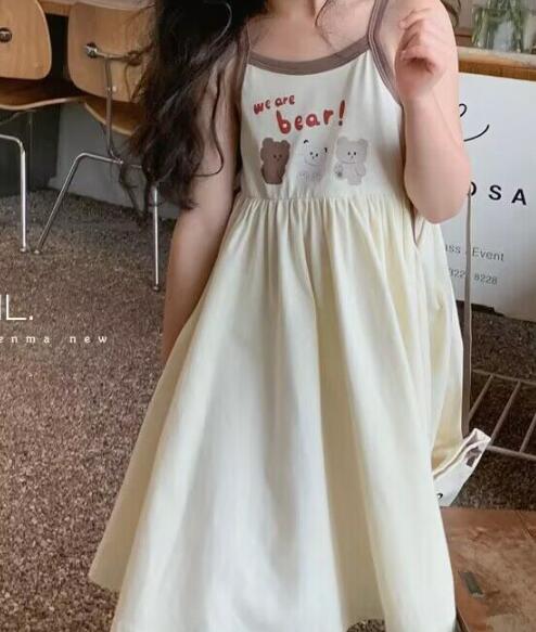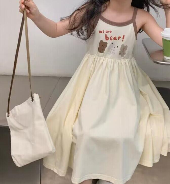 可愛いくま柄プリントが特徴的なキッズ用吊りスカートワンピースです。