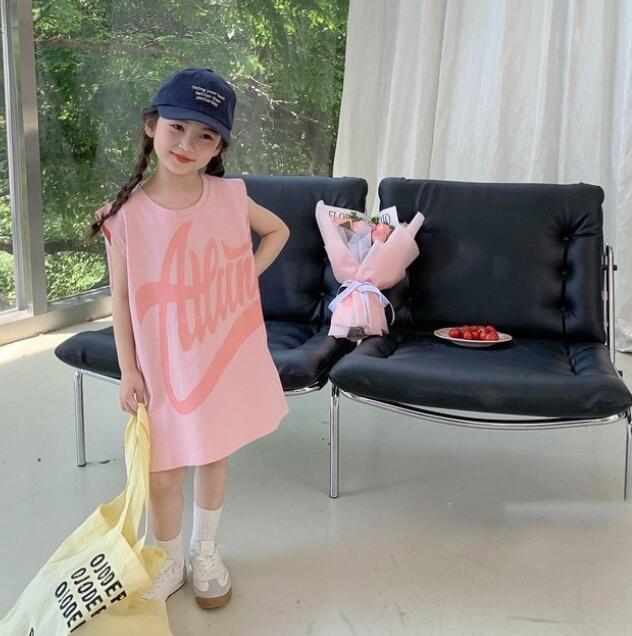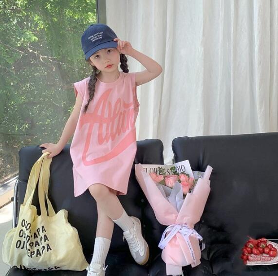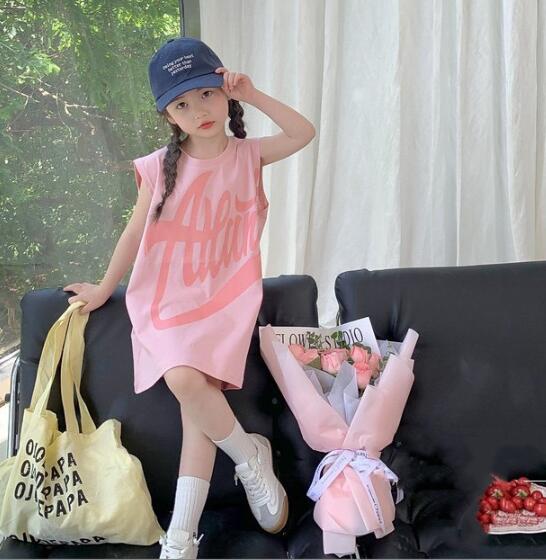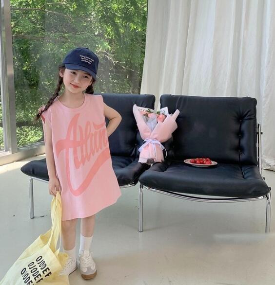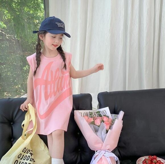 可愛いピンク色のキッズ用袖なしワンピースです。