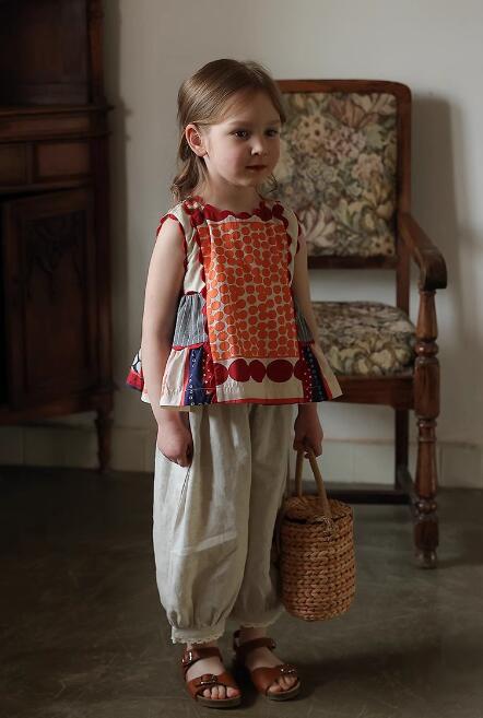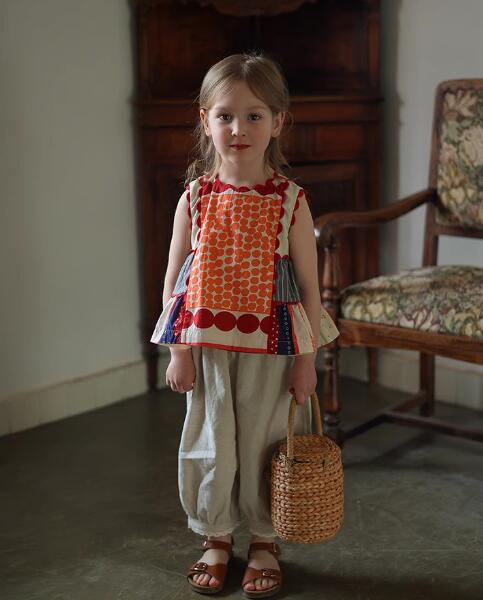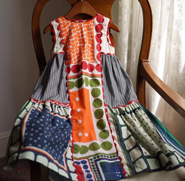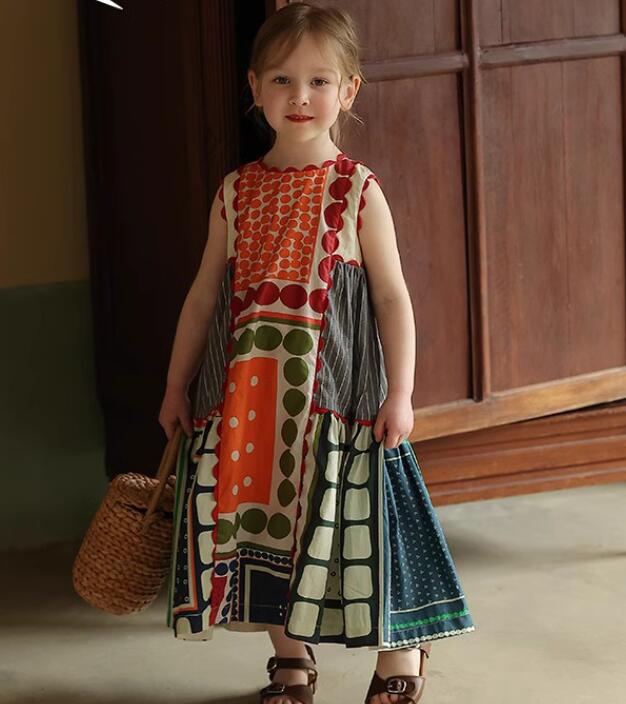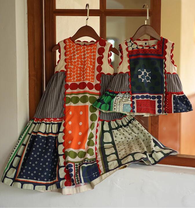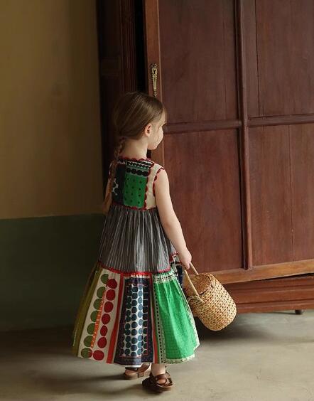 カラフルなパッチワーク柄がおしゃれで、夏にぴったりの涼しいノースリーブタイプです。