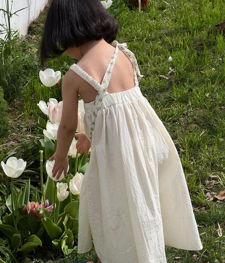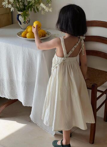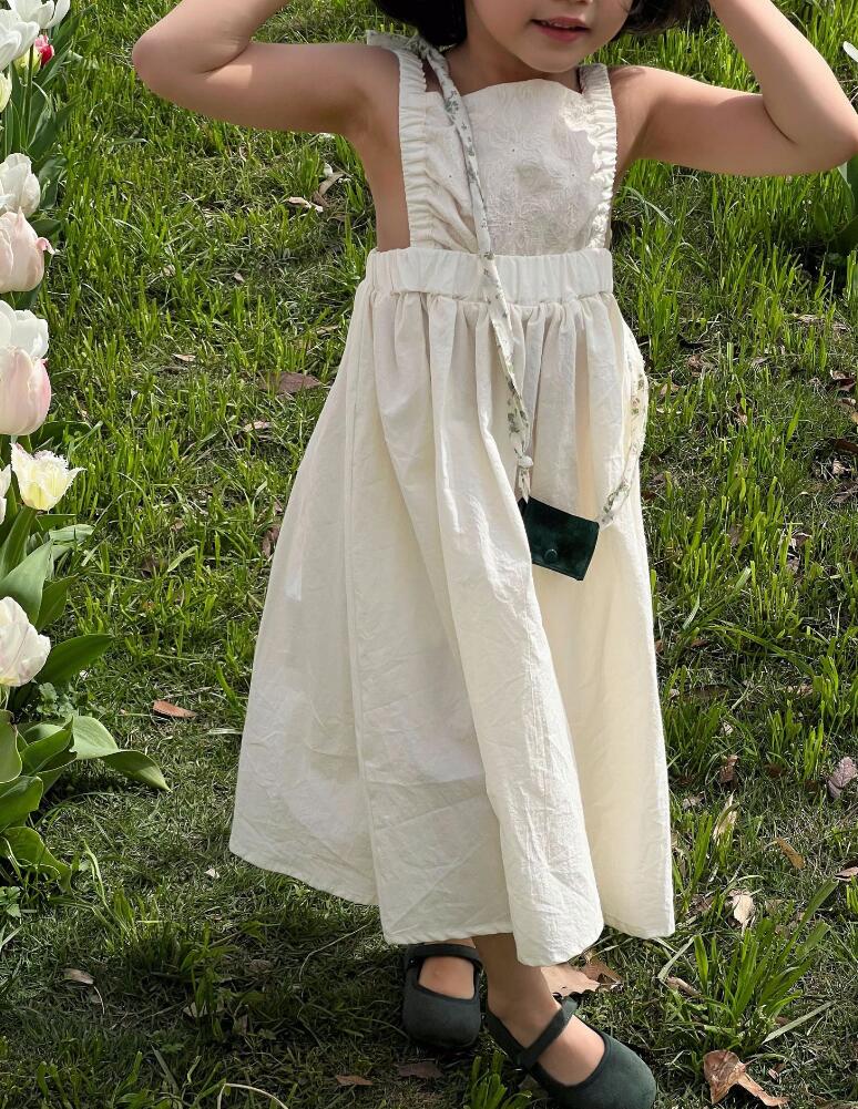 上品なレース装飾が美しいキッズ用ロングワンピース。