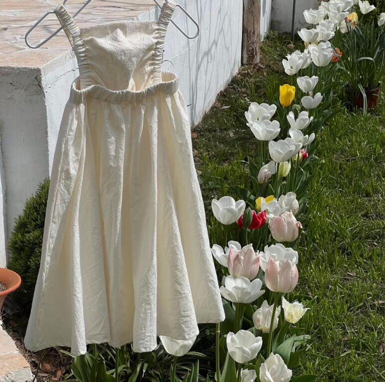 背中のクロスストラップがアクセントになった可愛らしいデザインです。