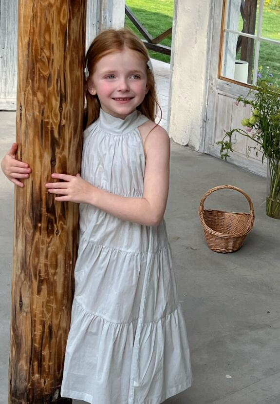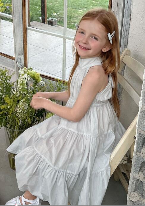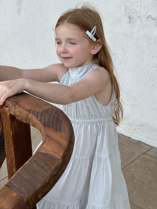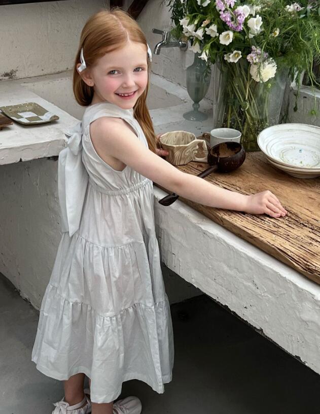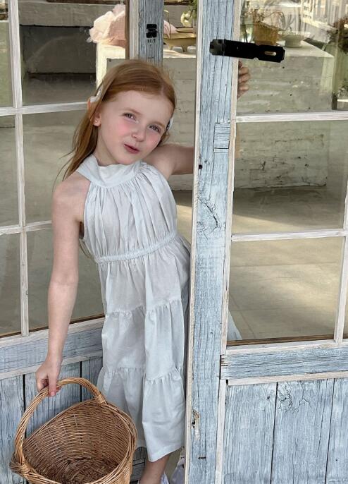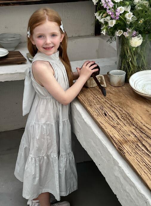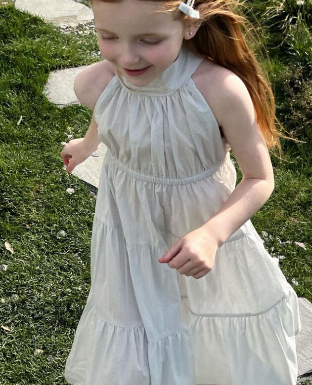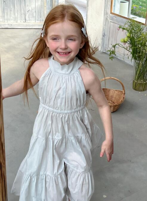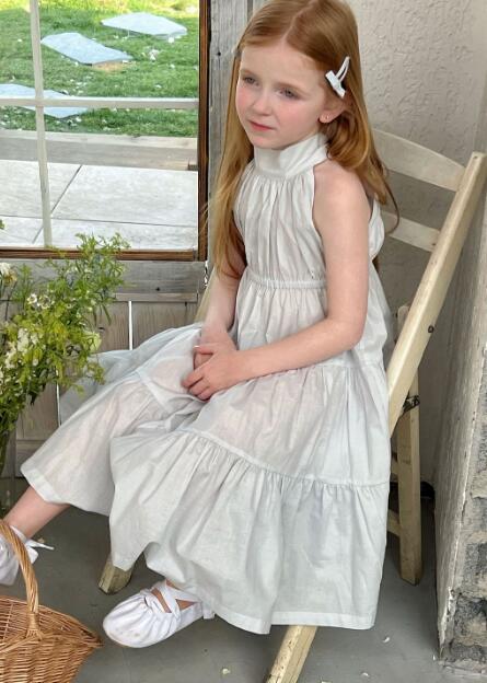 上品なティアードデザインが魅力的なキッズ用ロングワンピースです。
