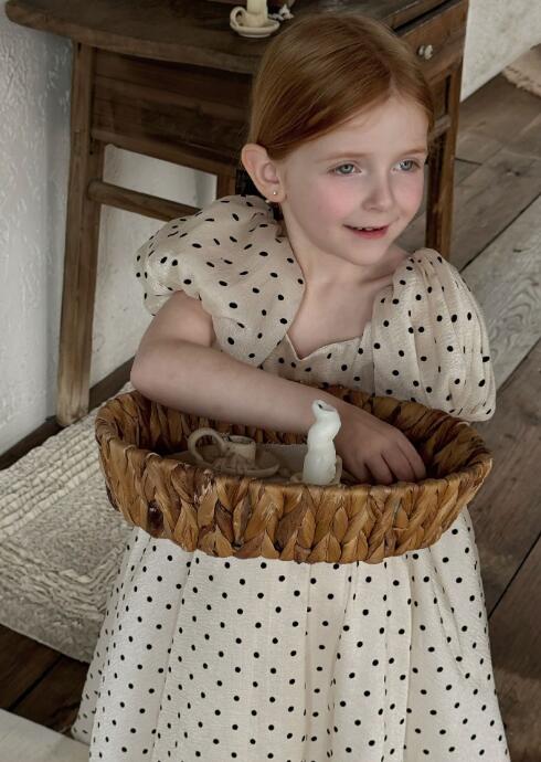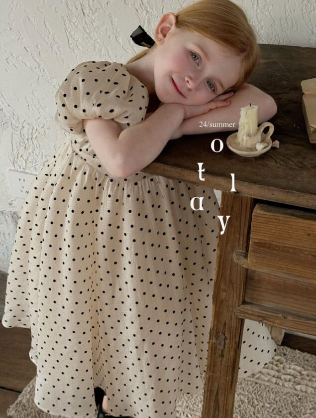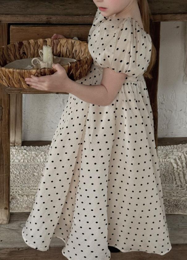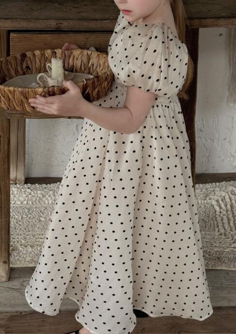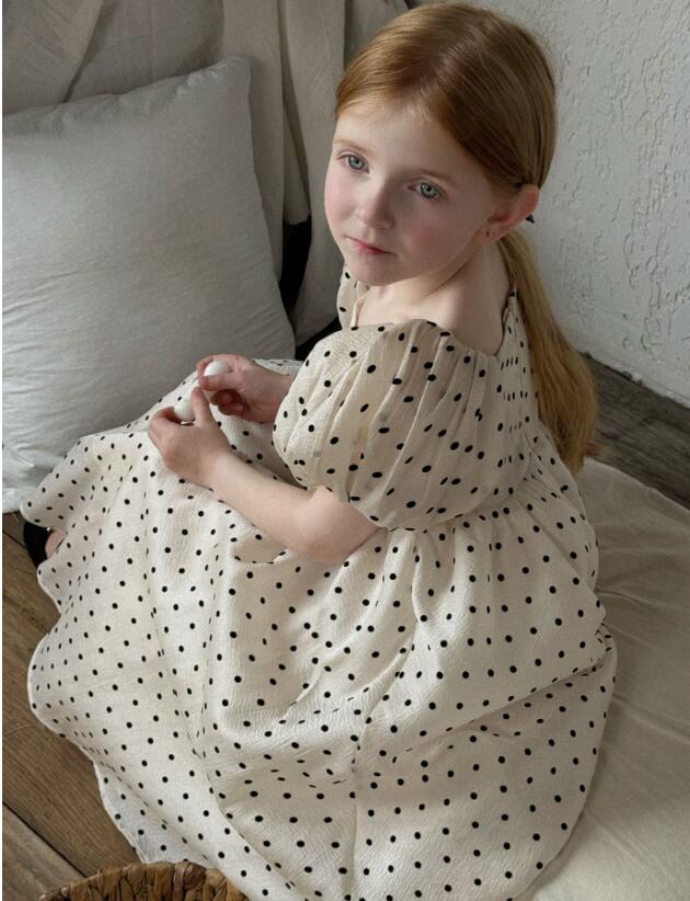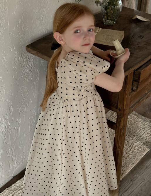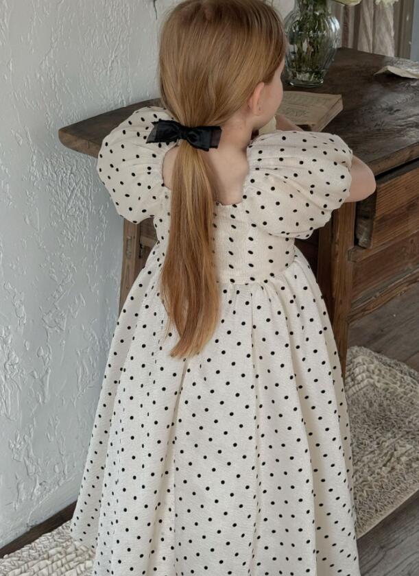 可愛い水玉模様が印象的なキッズ用ロングワンピースです。