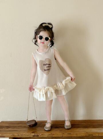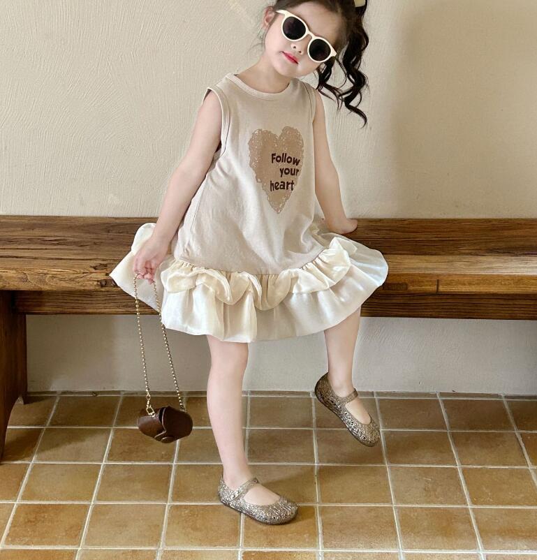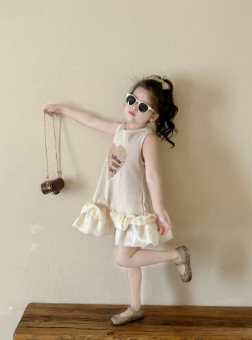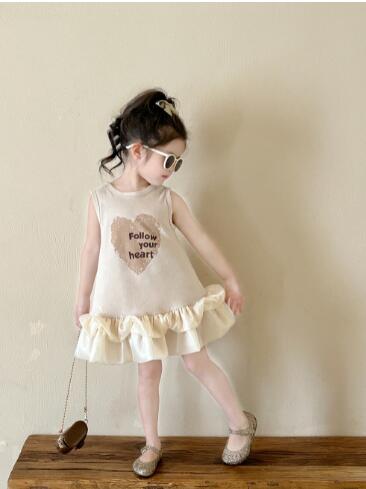 可愛いハート柄がポイントのキッズ向けロングワンピース。