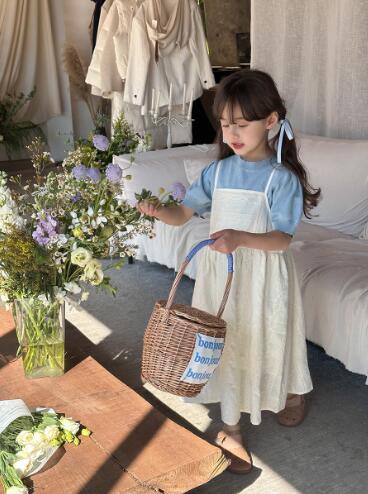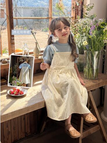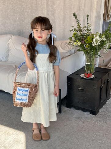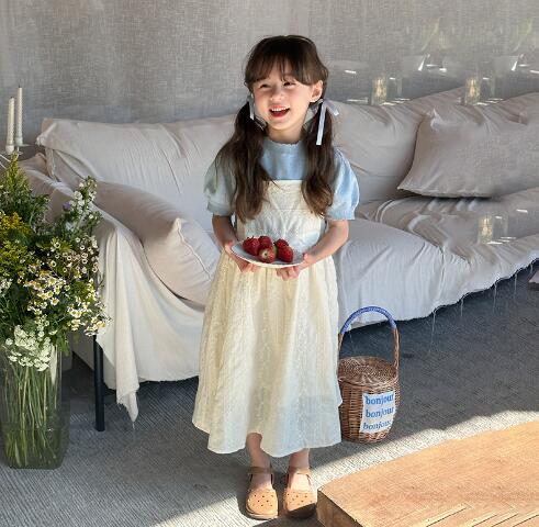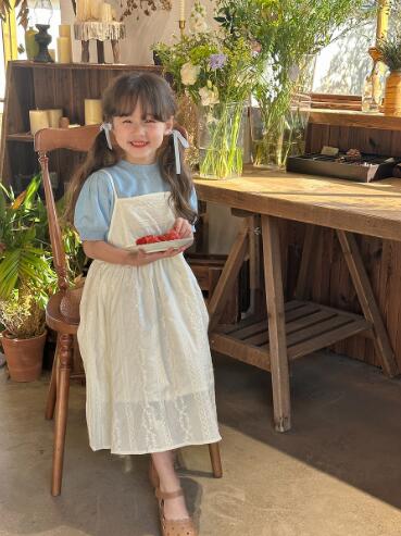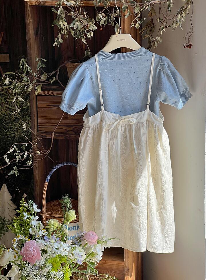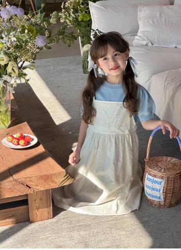 可愛いキッズ用のガーター編みニットロングワンピースです。