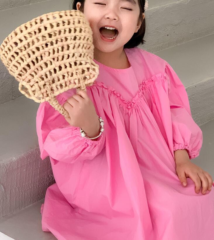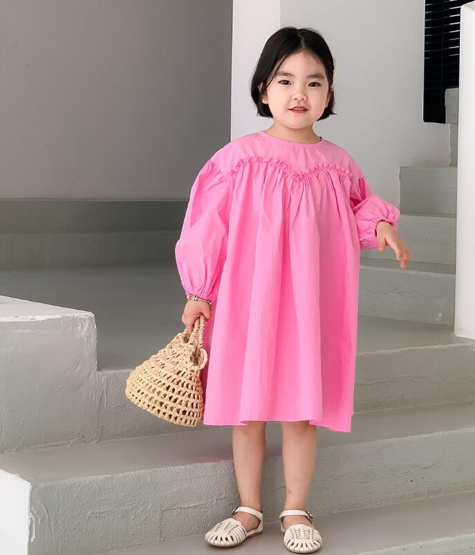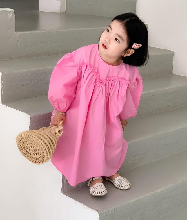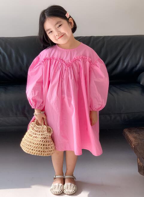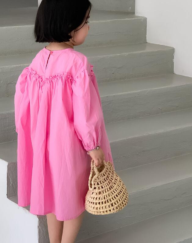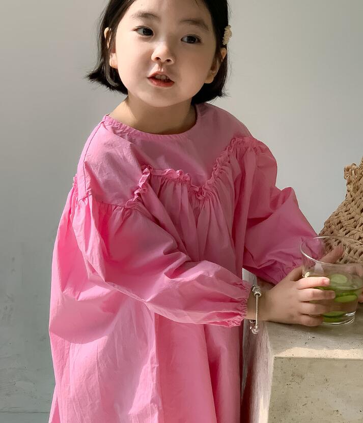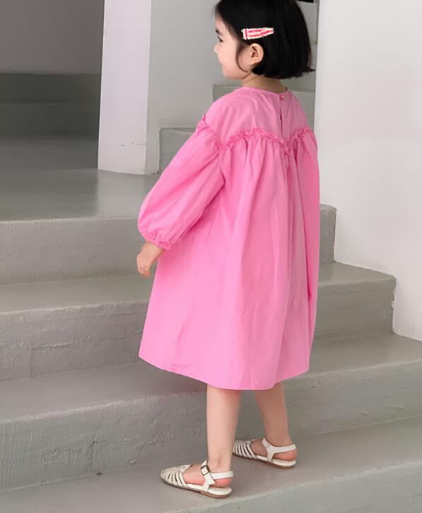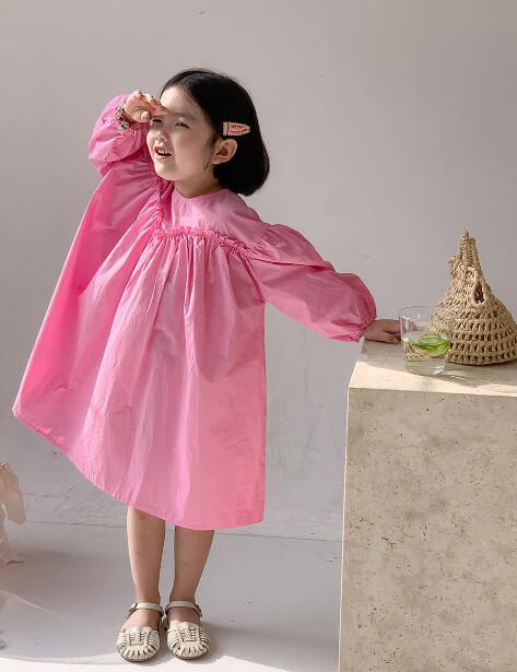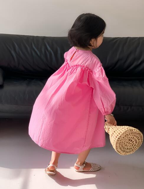 可愛らしいピンク色のキッズ用ロングワンピースです。