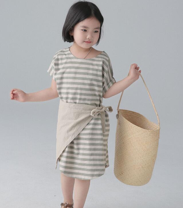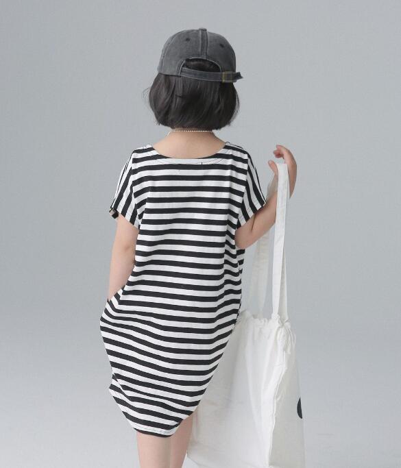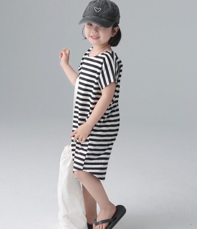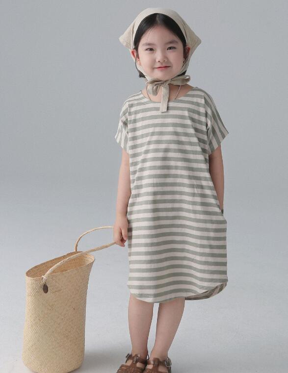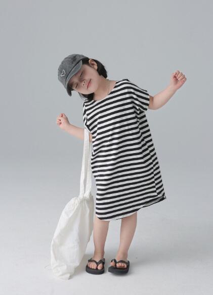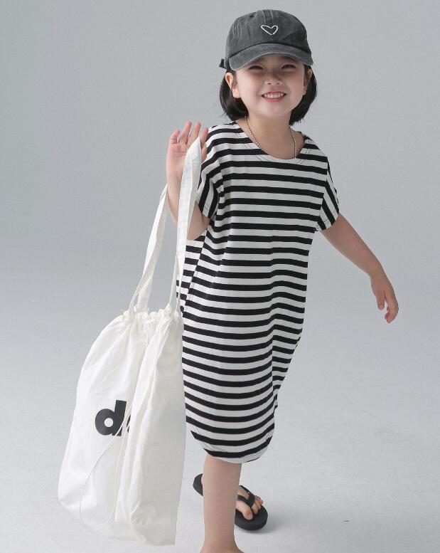 お洒落なキッズ向けボーダー柄のロングワンピースです。