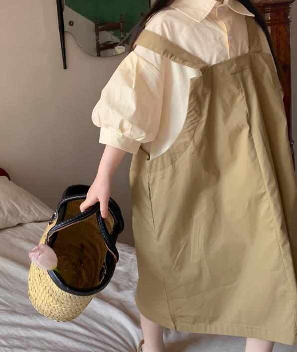 ベージュとオリーブ色の落ち着いたカラーでおしゃれな着こなしが楽しめます。