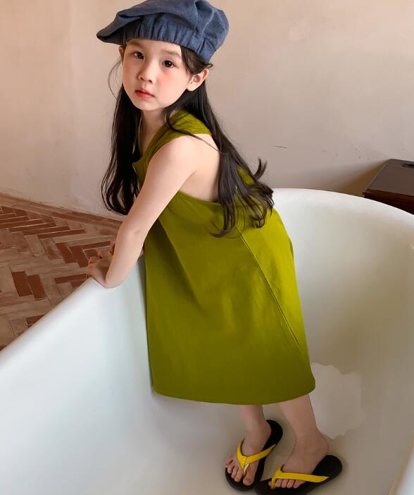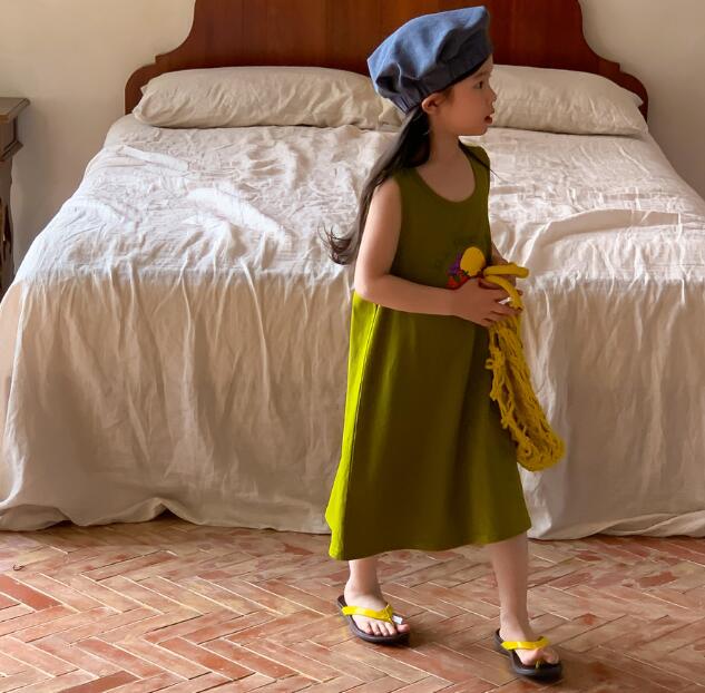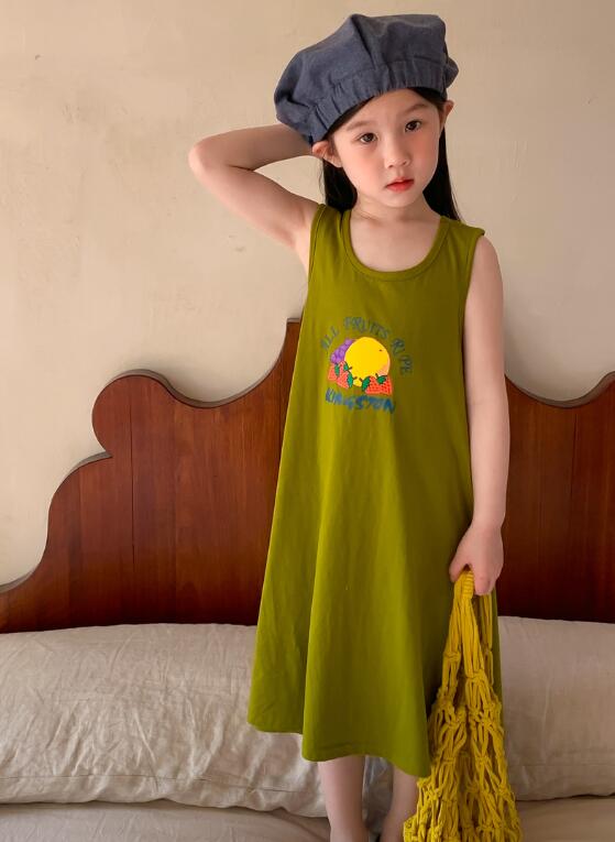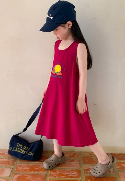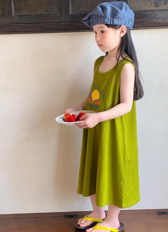 夏にぴったりなキッズ向け袖なしロングワンピースです。