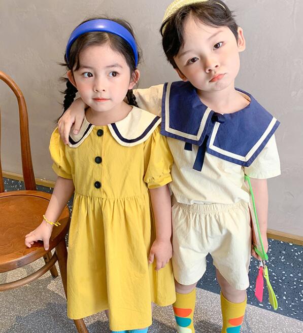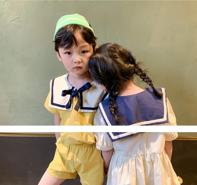 可愛い襟付きデザインのキッズ兄妹お揃い服装です。