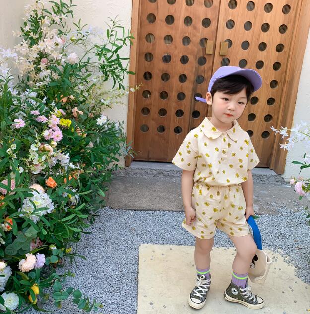 可愛い花柄がポイントのキッズ兄妹お揃いセットアップです。