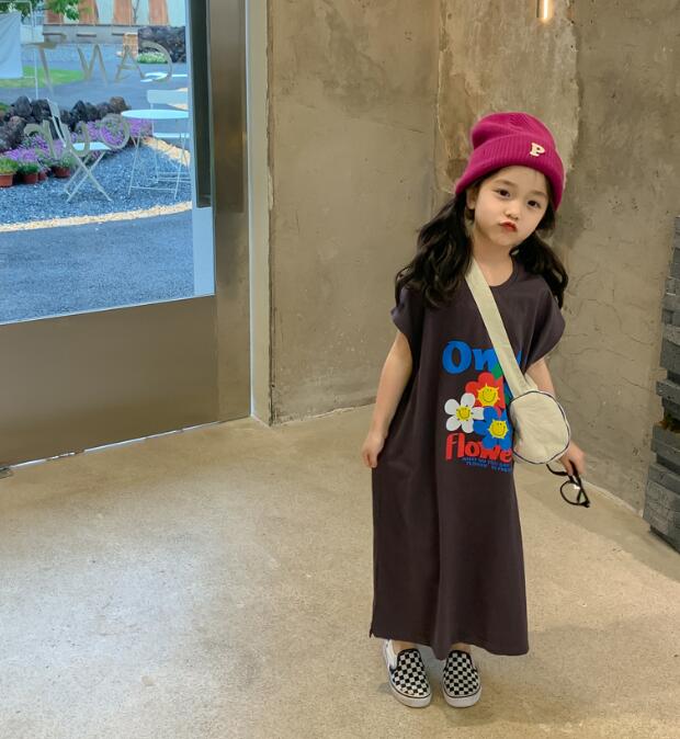可愛らしい花柄プリントが印象的なキッズ用ロングワンピースです。 半袖のゆったりとしたシルエットで着心地抜群。 膝下丈のロングワンピースは一枚でおしゃれに決まります。 普段着からお出かけまで幅広く活躍する万能アイテムです。