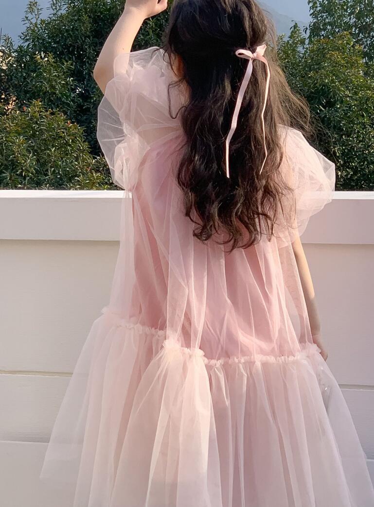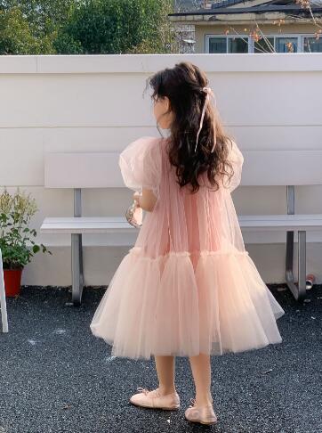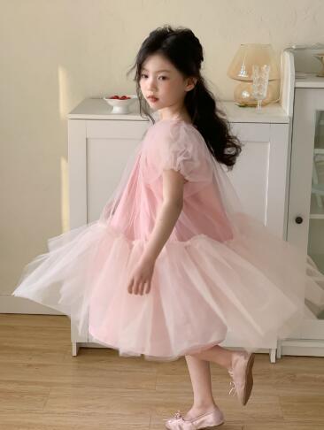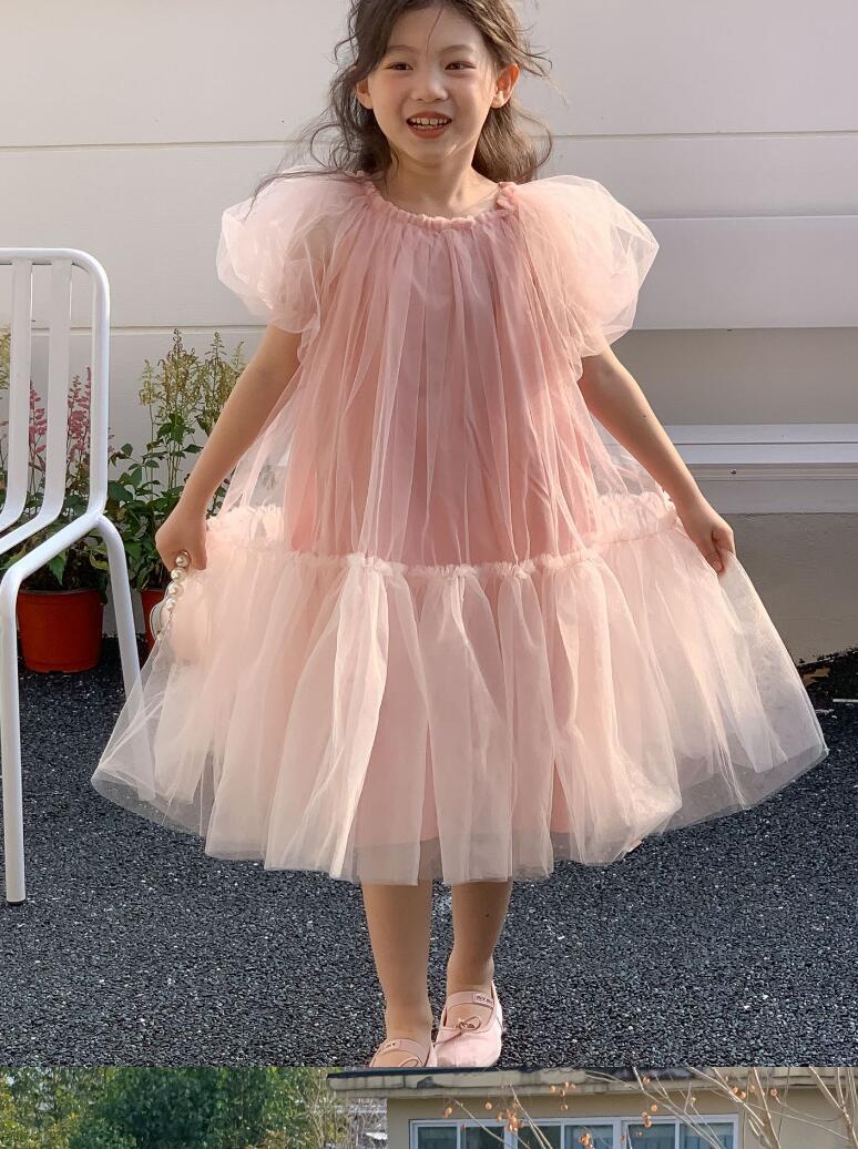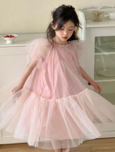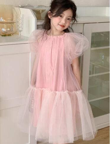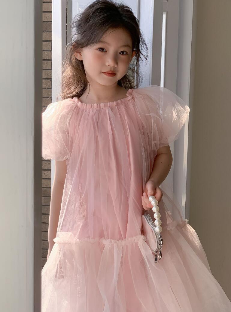 ふんわりと広がるチュール素材が美しいキッズ向けロングワンピースです。