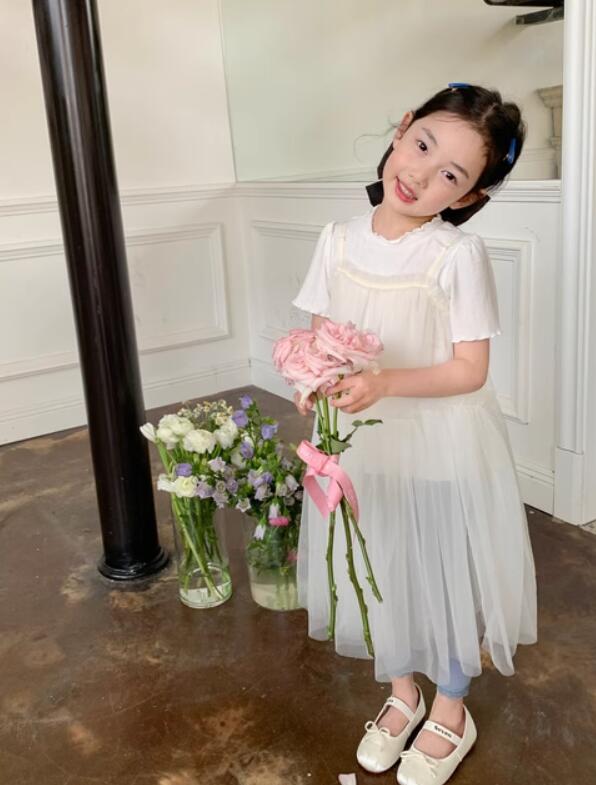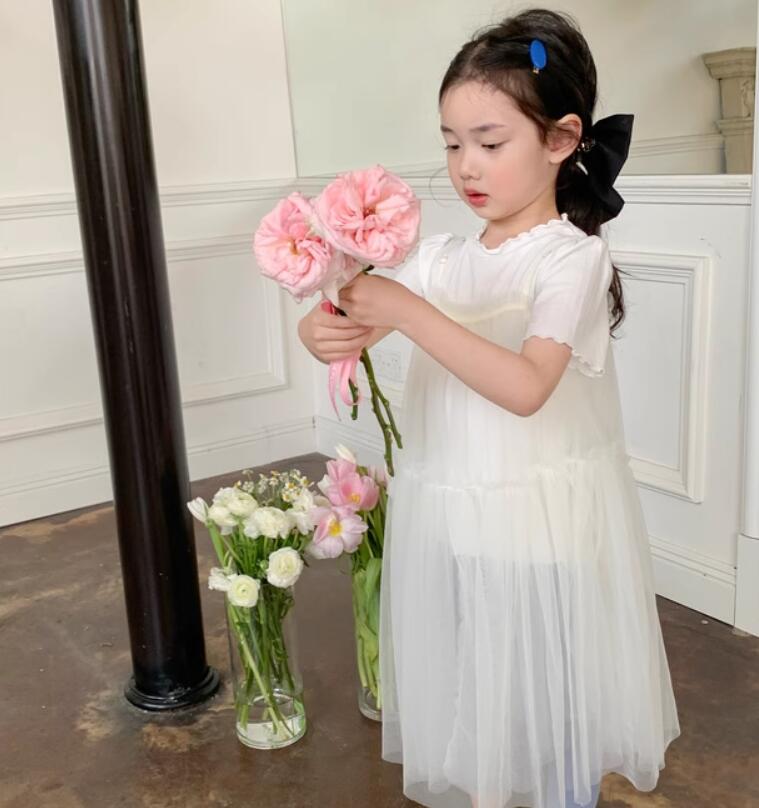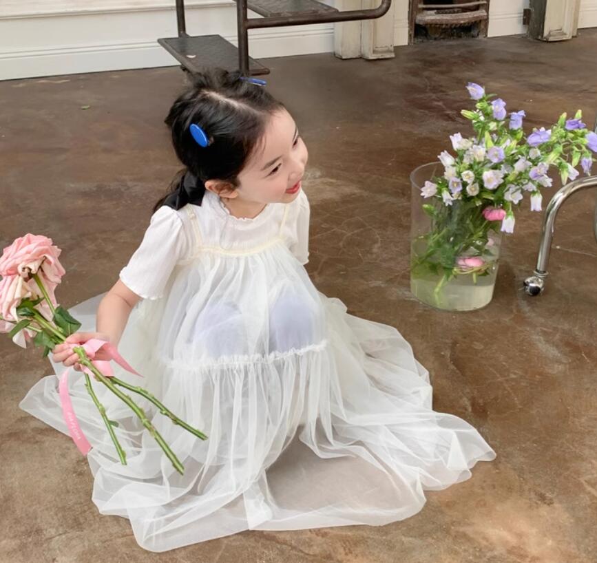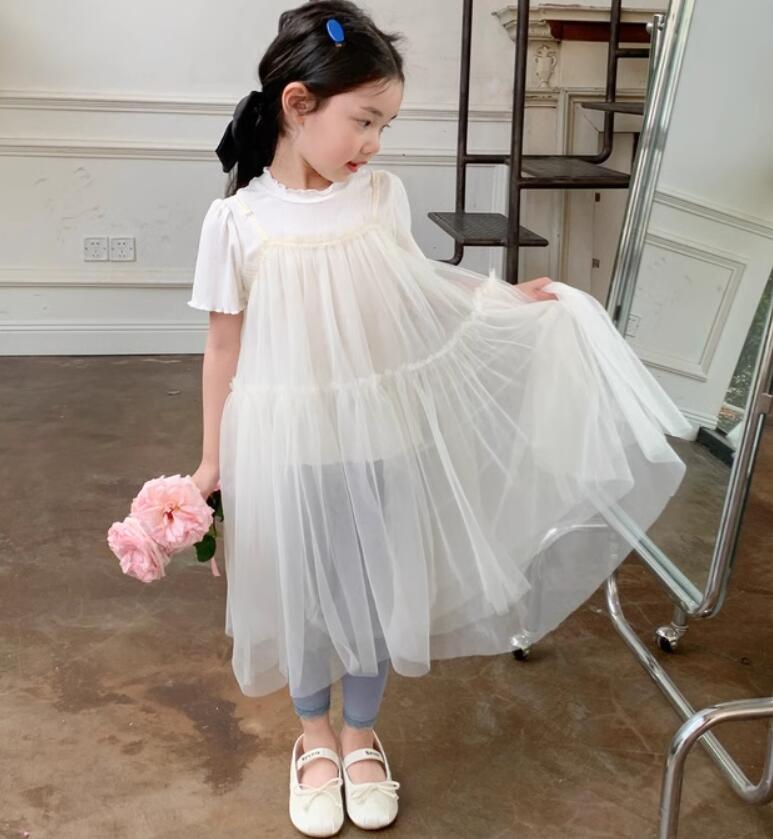 ふんわりと軽やかなチュール素材を使用したキッズ用ロングワンピースです。