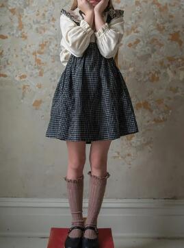可愛らしいチェック柄が印象的なキッズ向けガーターサスペンダースカートです。