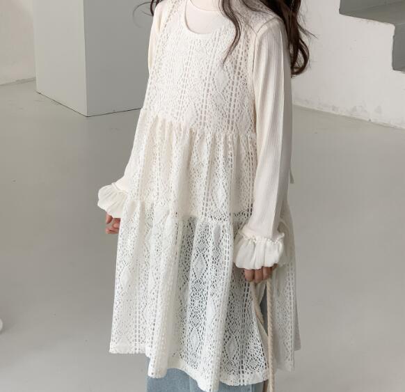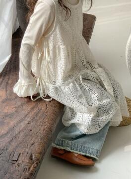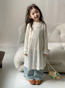 上品な白レースが美しいキッズ向けロングワンピースです。