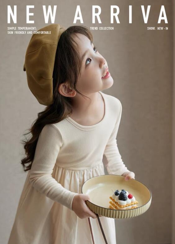 柔らかなリブ素材で着心地抜群、上品なベージュカラーが特徴的です。