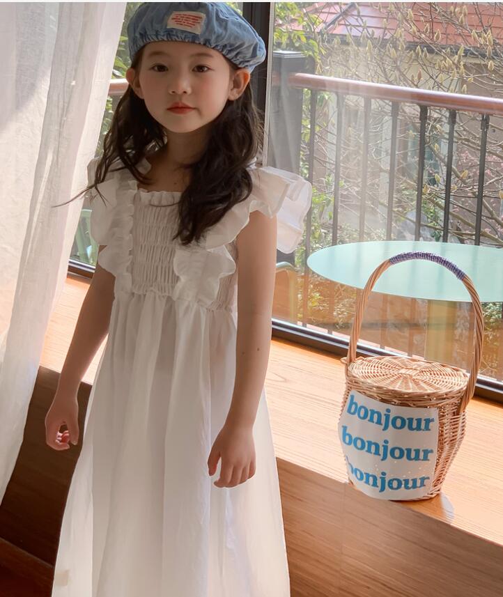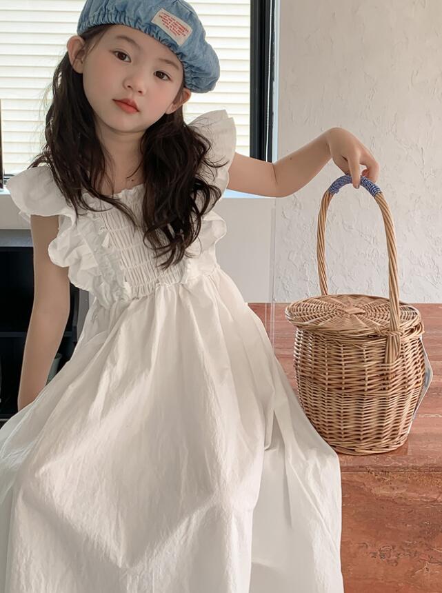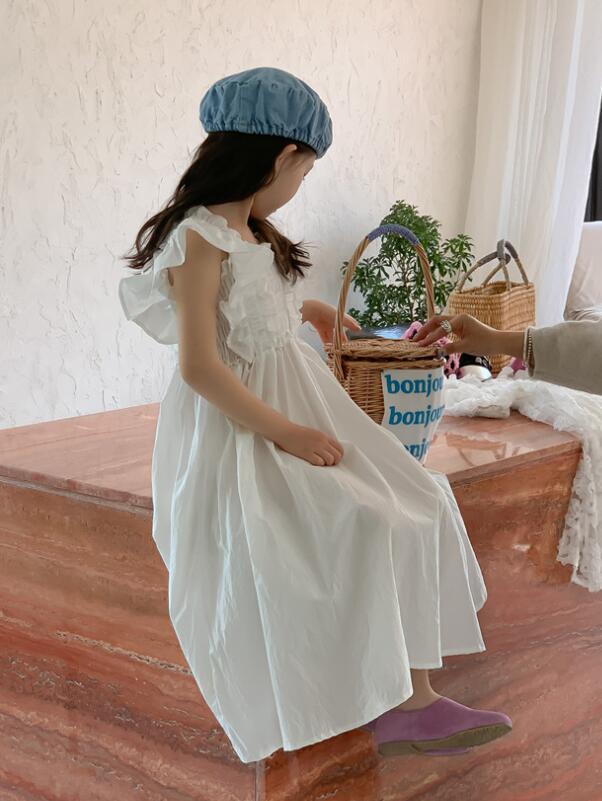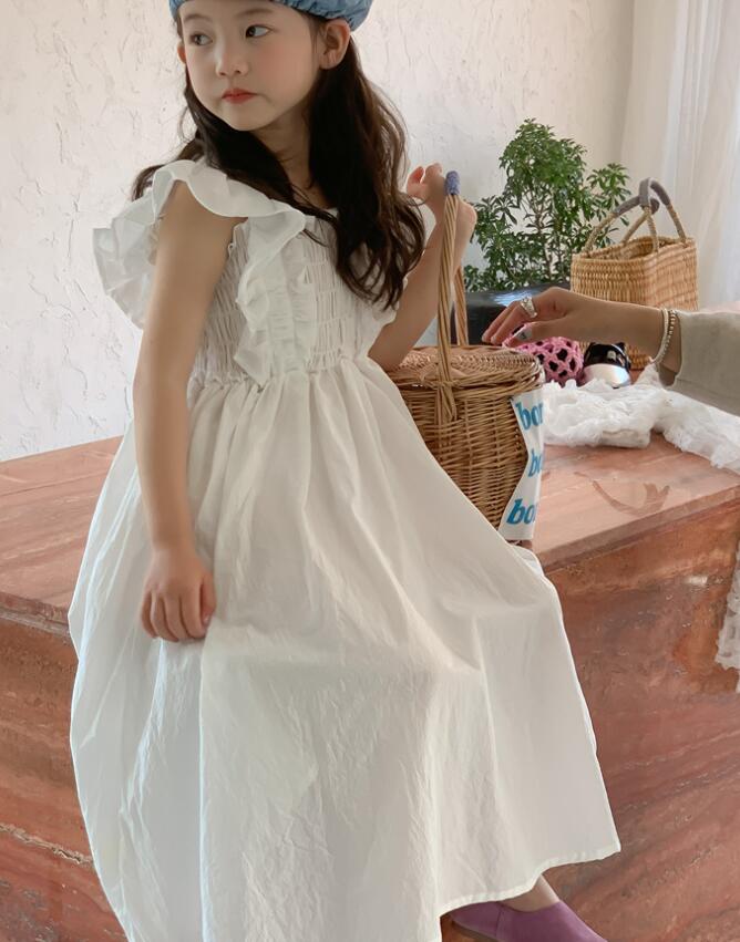 上品な白色が美しいキッズ用ロングワンピースです。