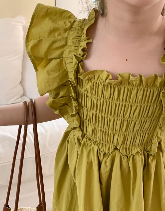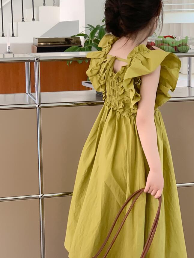 可愛らしいフリル袖とゆったりとしたシルエットが特徴的で、お出かけや特別な日にぴったり。