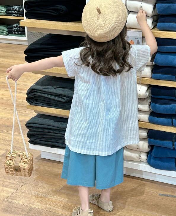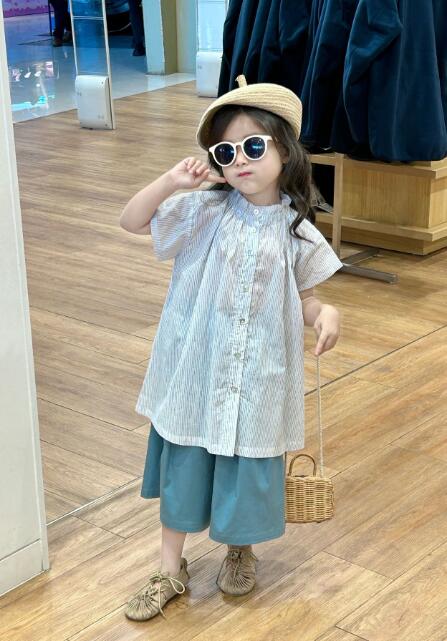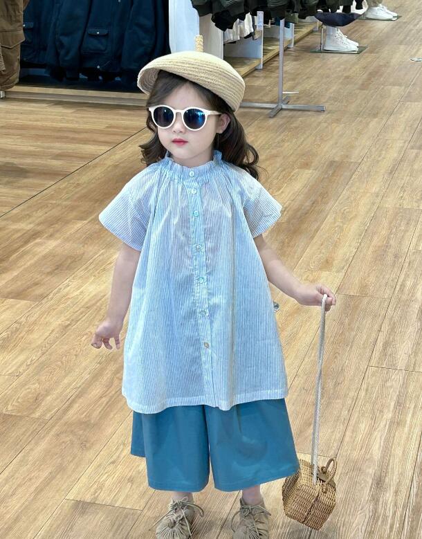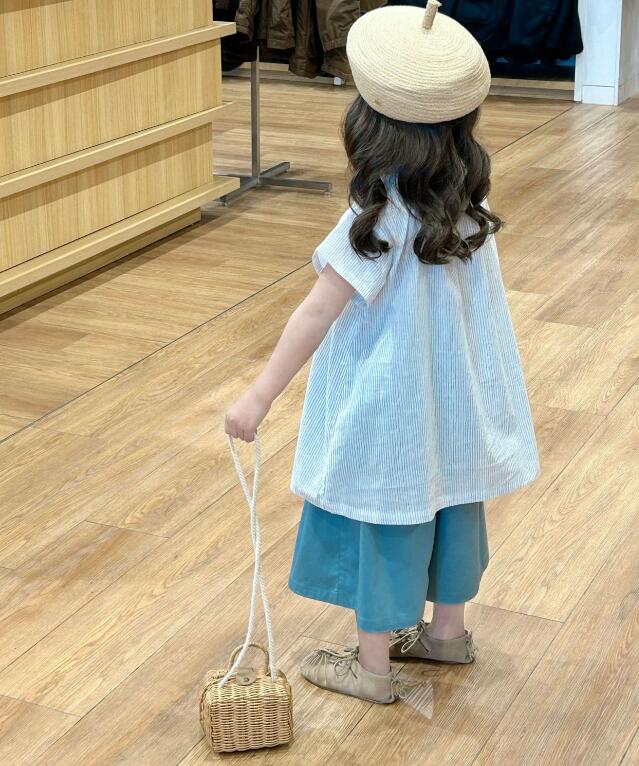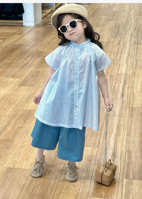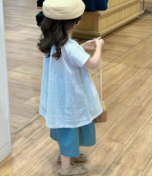 夏にぴったりの涼しげなストライプ柄のキッズ用ロングワンピースです。