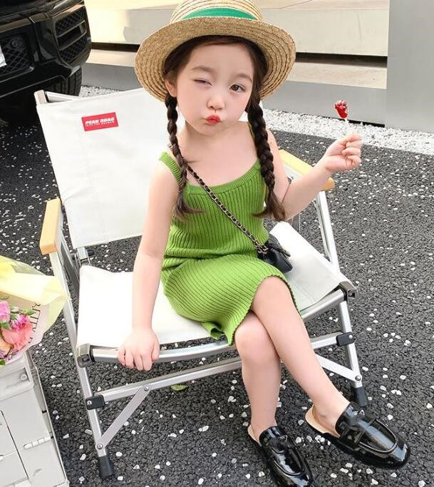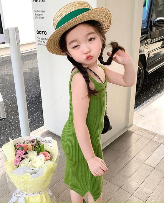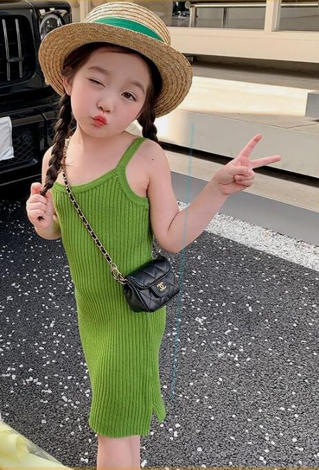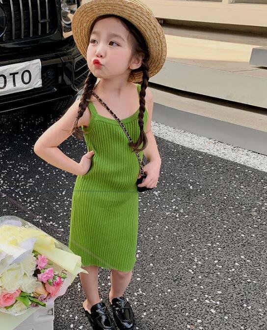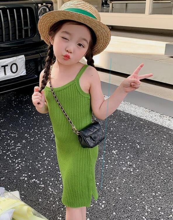 夏にぴったりのキッズ向けリブ編みロングワンピースです。