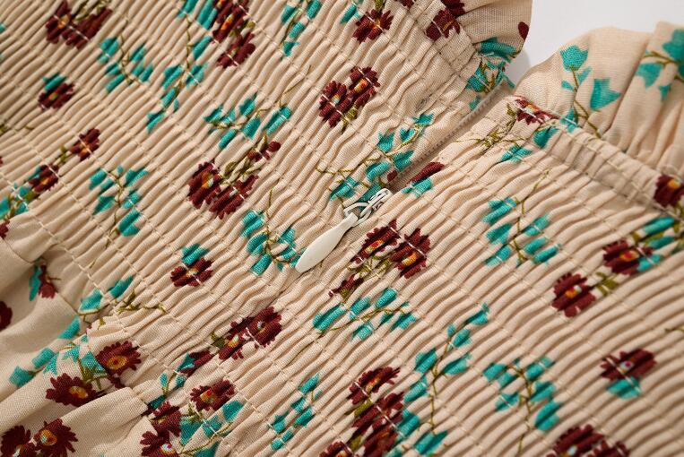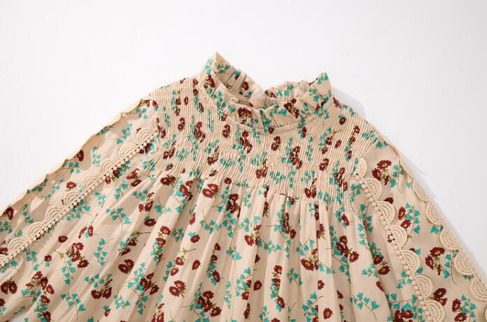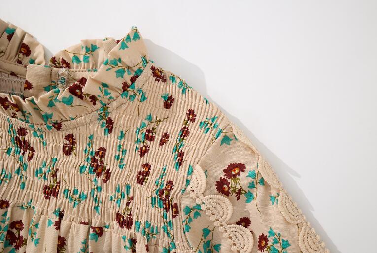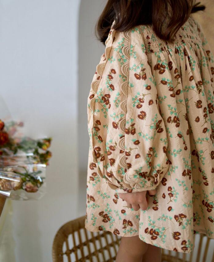 胸元のシャーリングデザインがとても上品で、ふんわりとした袖が女の子らしさを演出します。